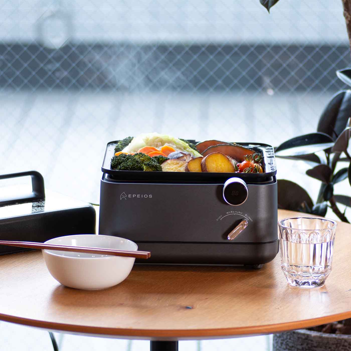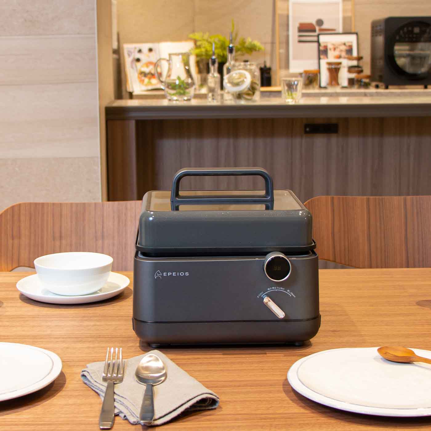 独⾃発熱ユニット搭載で素早く本格調理1台3役(蒸す,焼く,煮る)できるコンパクトなマルチ調理家電「EPEIOSマルチスチームホットプレート」を6⽉20⽇(⽉)より販売開始致します。