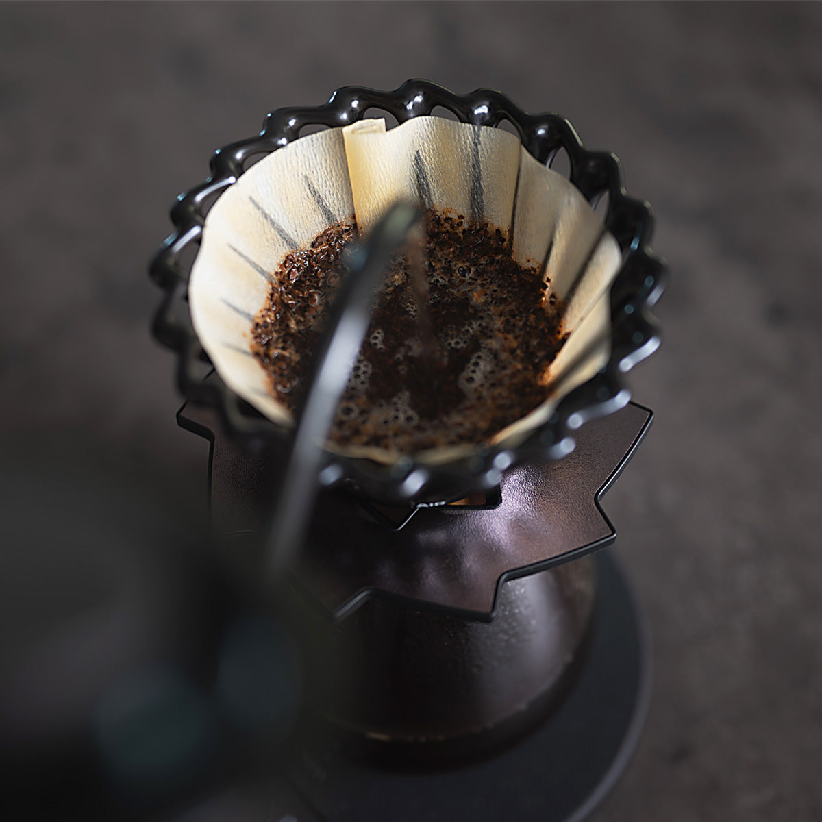 The side of the brewer is hollowed out, allowing the filter to be exposed to air and efficiently expelling the carbon dioxide generated from the coffee grounds during extraction. Optimized water flow improves extraction efficiency and aroma expression, while efficient carbon dioxide emission suppresses the generation of excessive acidity, resulting in a clean, bright, and layered coffee.