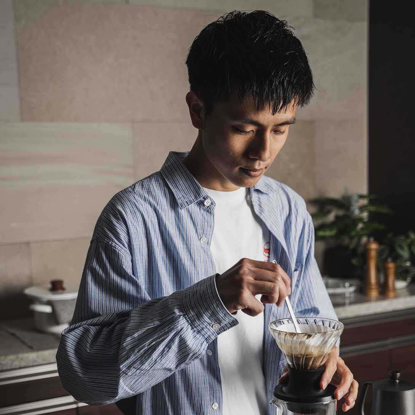 物心ついたときからコーヒーは毎日食卓に並んでいて、中学に入る頃から今日まで毎朝コーヒーを飲む人生を歩んできた。昔から食に強い興味があり、Le Cordon Bleu代官山で料理と菓子を学びレストランやパティスリーで働き、その後経営を学ぶ為チェーンのカフェやバーや居酒屋で店長を経験。Qグレーダー資格取得を機にスペシャルティコーヒーの名門「堀口珈琲」で勤め早10年。コーヒー製造、喫茶店舗のマネジメント、販売戦略責任者、ネットショップ責任者&物流責任者と様々なポジションを経験。