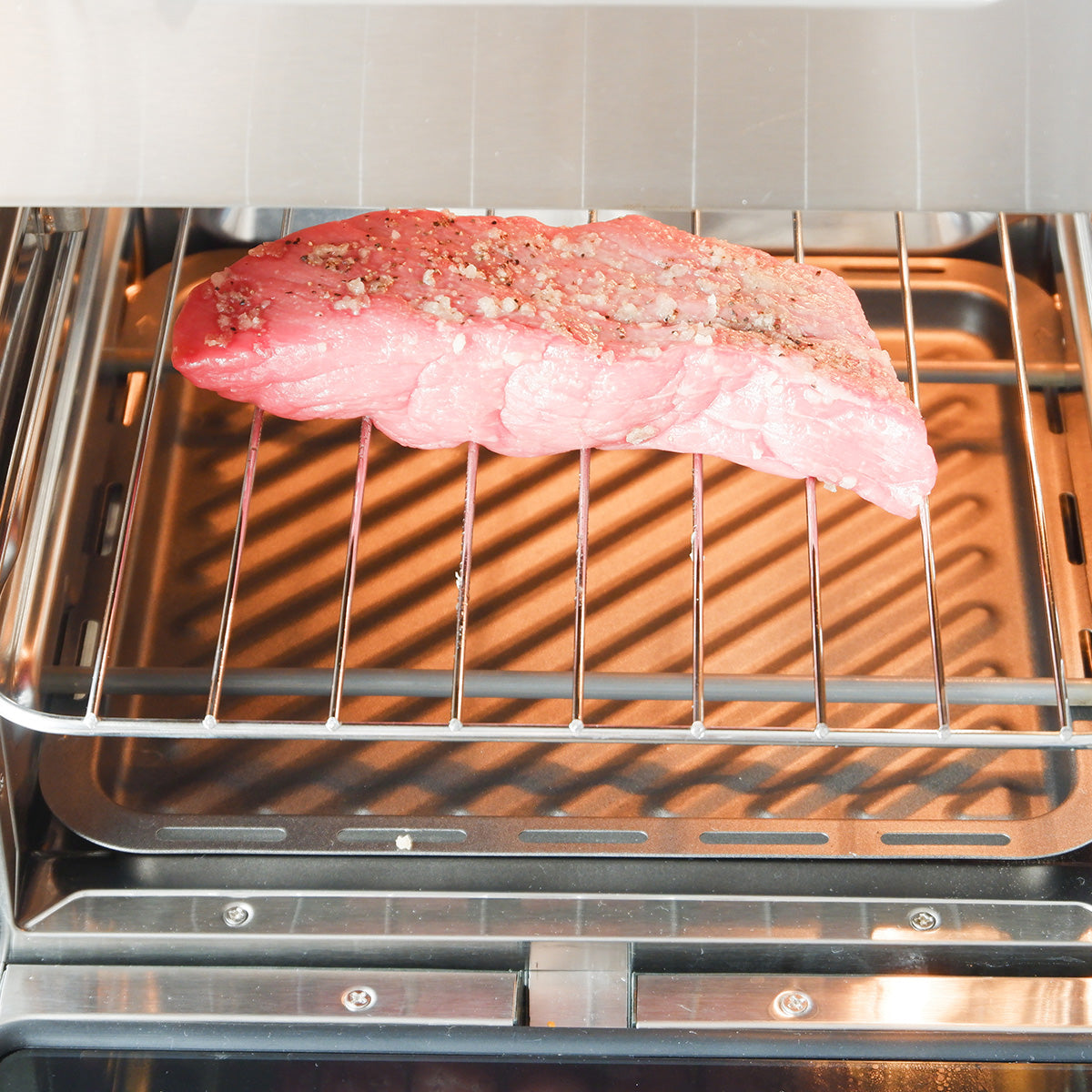 Chefには上下ヒーターつきなので、肉を途中でひっくり返す手間がなく、ほったらかし調理が可能です。途中でオーブンを開けることもなく、温度を下げずに一定温度で加熱できます。