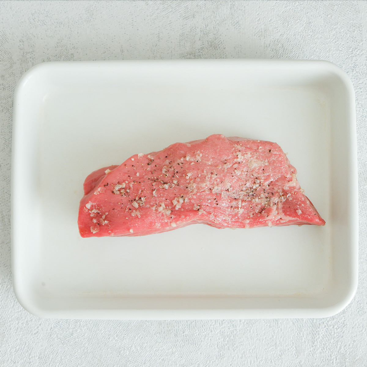 加熱加減が難しいローストビーフも、Chefで温度を一定に保ち、衛生的に調理します。フライパンで一度肉の表面を焼く手間もなし。表面にオリーブオイルを塗っているので、旨味を逃がさず仕上げます。