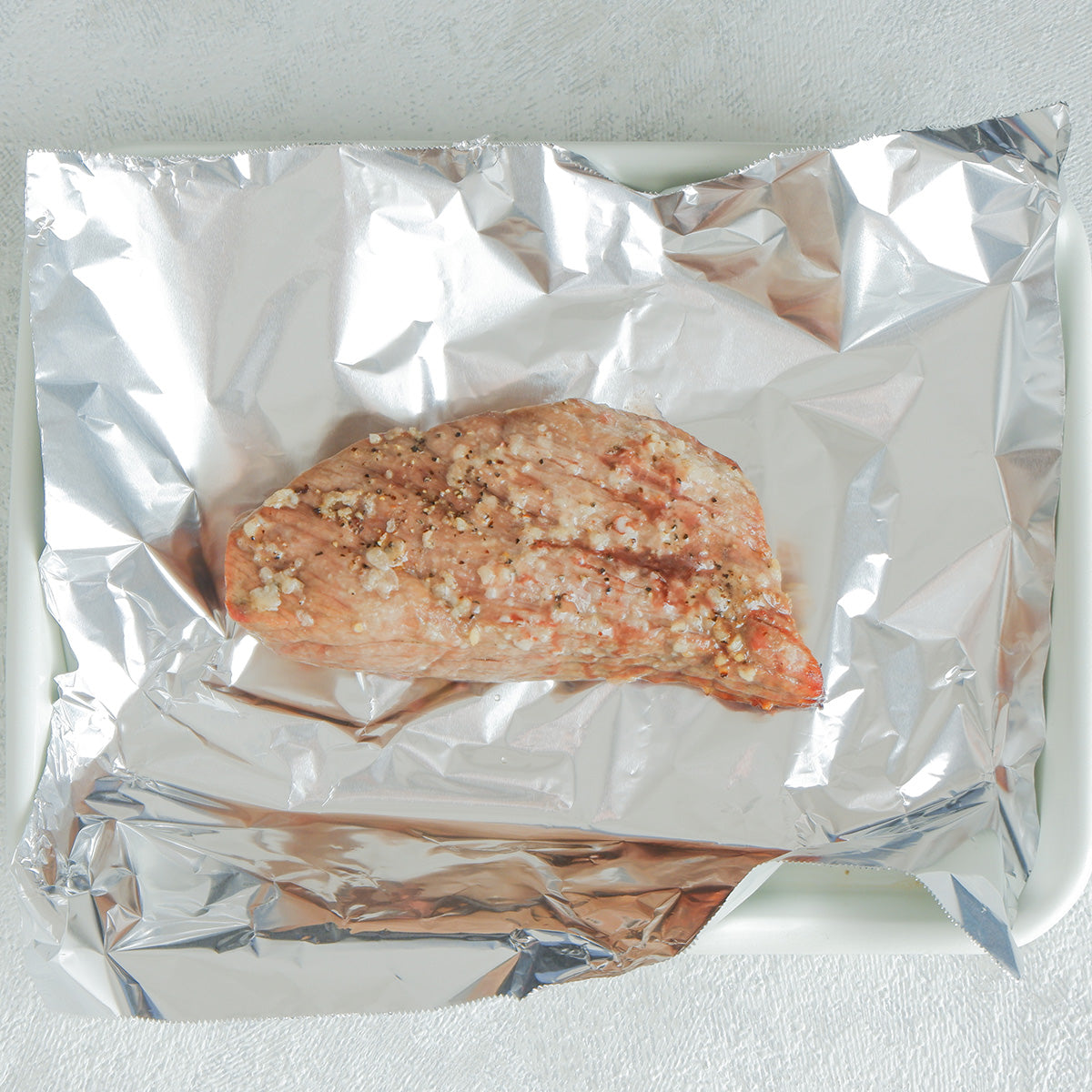 肉に調味料をすり込んだら、室温に戻しておくのがポイントです。冷たいまま焼くと火の通り具合が変わってきます。すぐ調理しない場合は冷蔵庫で保管し、焼く前に少し室温においてから調理してください。食中毒の危険性がある夏場も同様に調理するのが安心です。