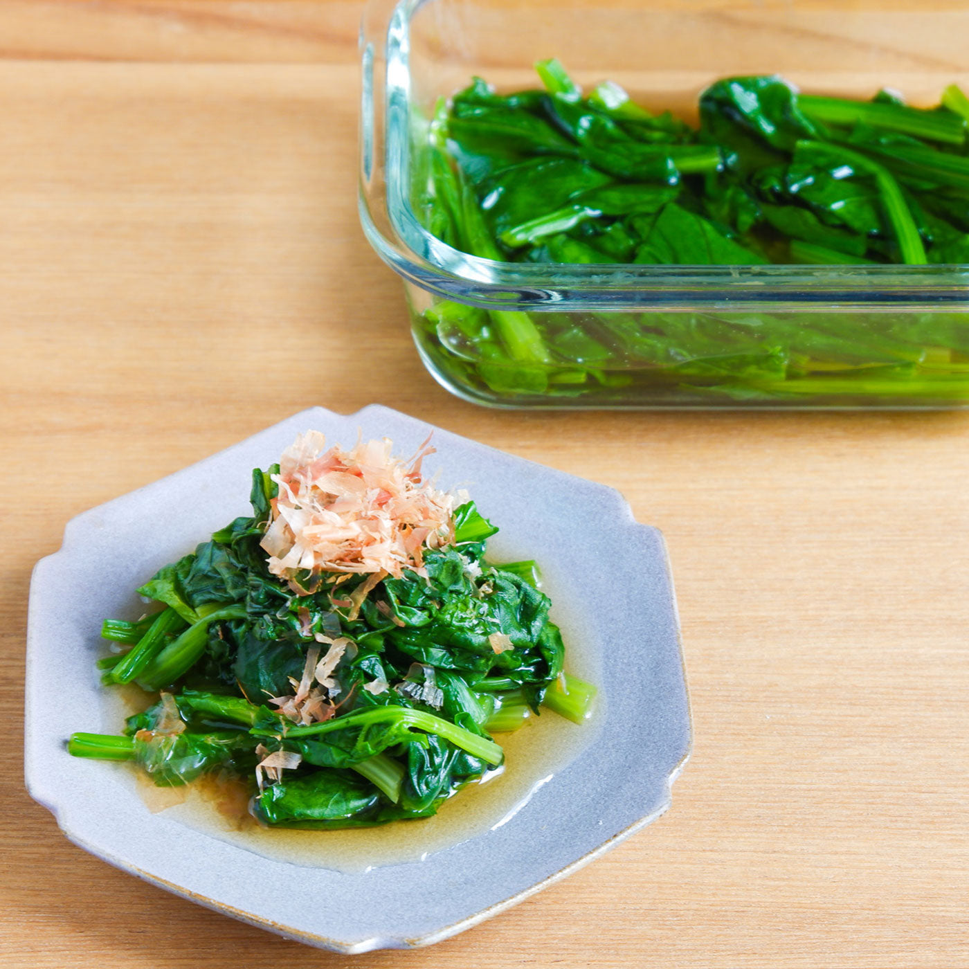 ほうれん草は熱いうちに調味料を注ぐことで、味が染み込みます。冷やして食べるのがおすすめです。