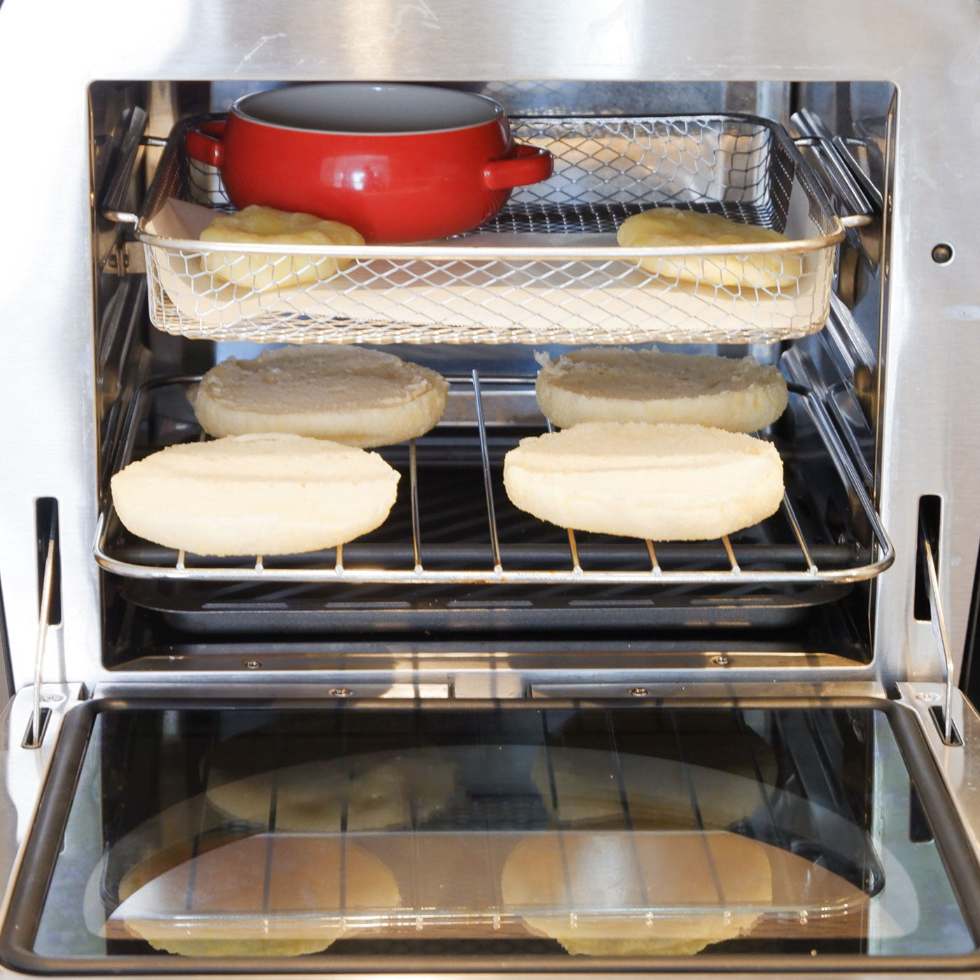 マフィンと一緒に目玉焼きとベーコンを焼きながら、ハッシュポテトも同時調理できます。通常パンを焼くトースター以外にフライパンや揚げ物鍋が必要なメニューも、Chef一台で簡単調理。