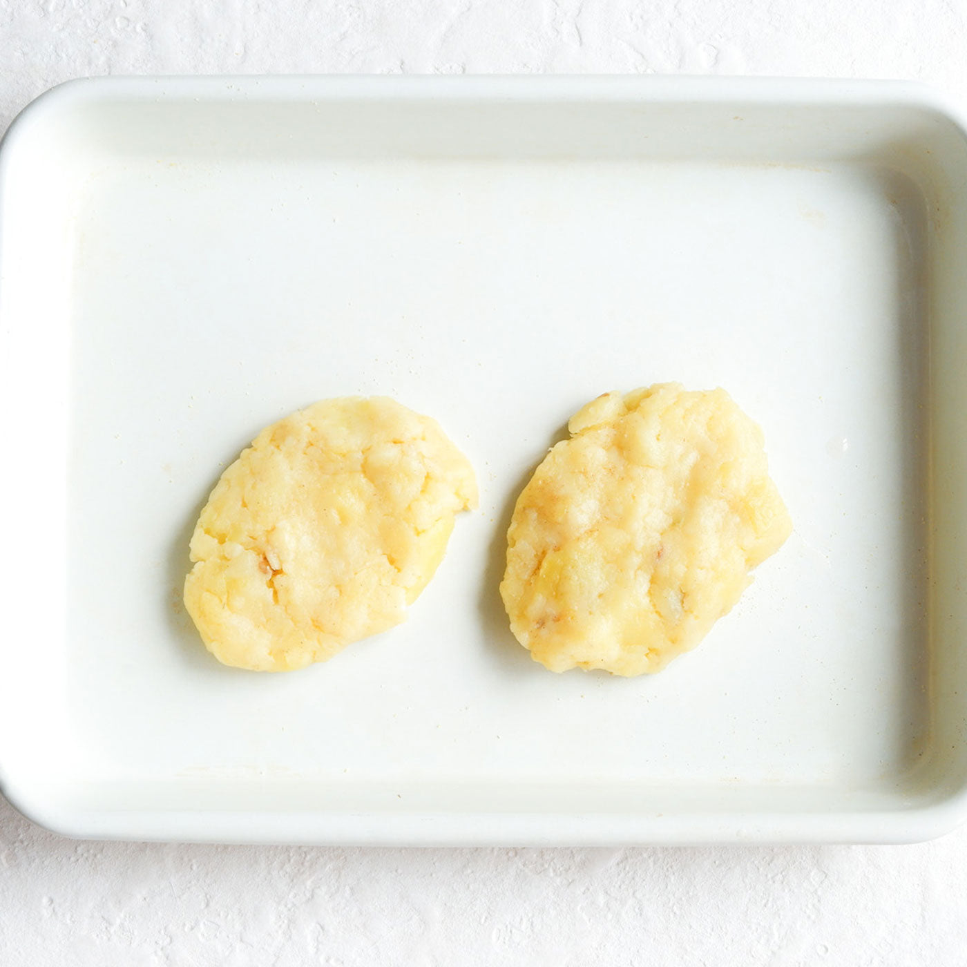 じゃがいもは粗くつぶすことで、食感を楽しめるハッシュポテトに。最後に高温でさっと焼くことで表面はカリカリに。