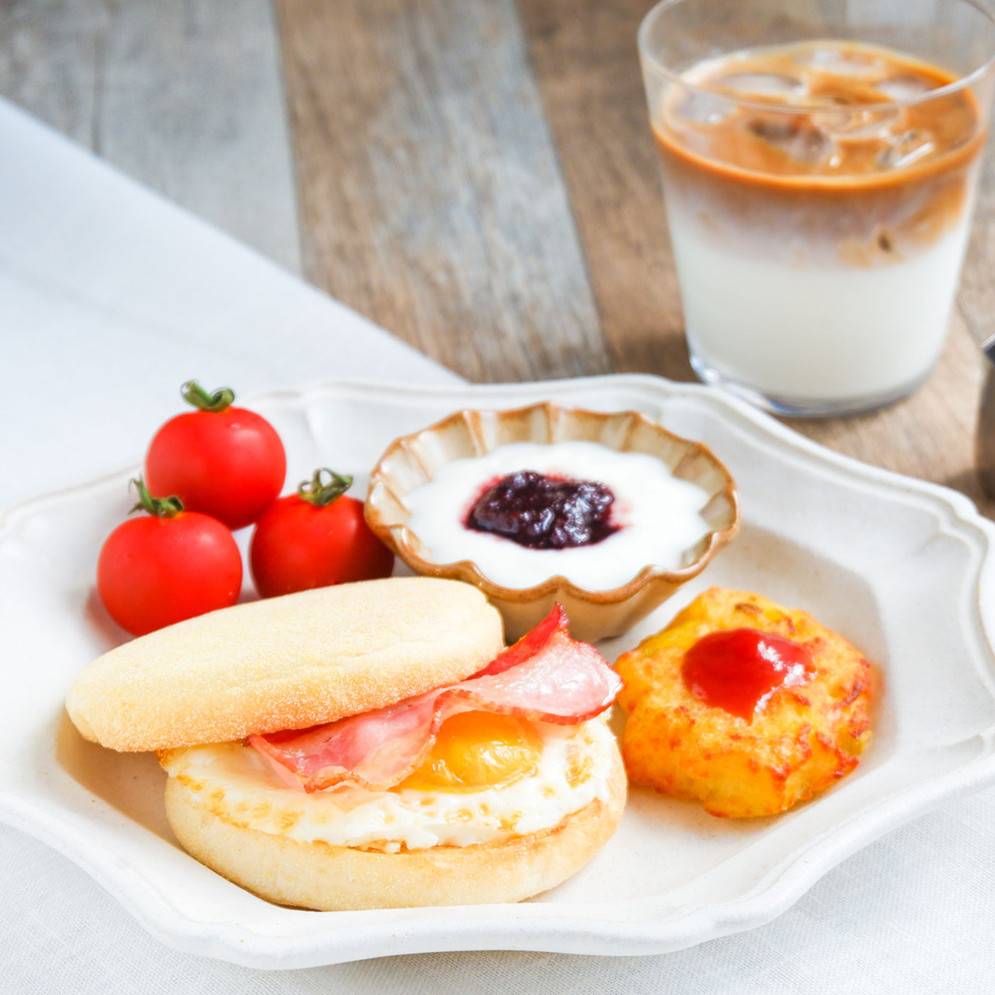 今回は、イングリッシュマフィンの中でも人気の「ベーコンエッグマフィン」をワンプレートレシピと一緒にご紹介いたします。子供も大好き「ハッシュポテト」レシピもご紹介。