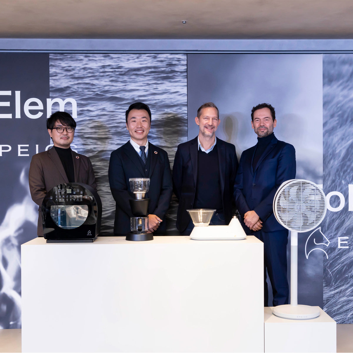 新シリーズの最初のラインナップとして、現在発売中の加湿器に加え、ノンフライヤーオーブン、コーヒーメーカー、サーキュレーターの四つの製品を順次開発していくことが決まっていました。そして、デザイナーとの対話を繰り返しながら、Four Elements=水・火・土・風の四元素から着想を得て誕生した「FoElem(フォーエレム)」。FoElemの誕生までには、EPEIOSとデザイナーが紡ぐひとつの物語があります。