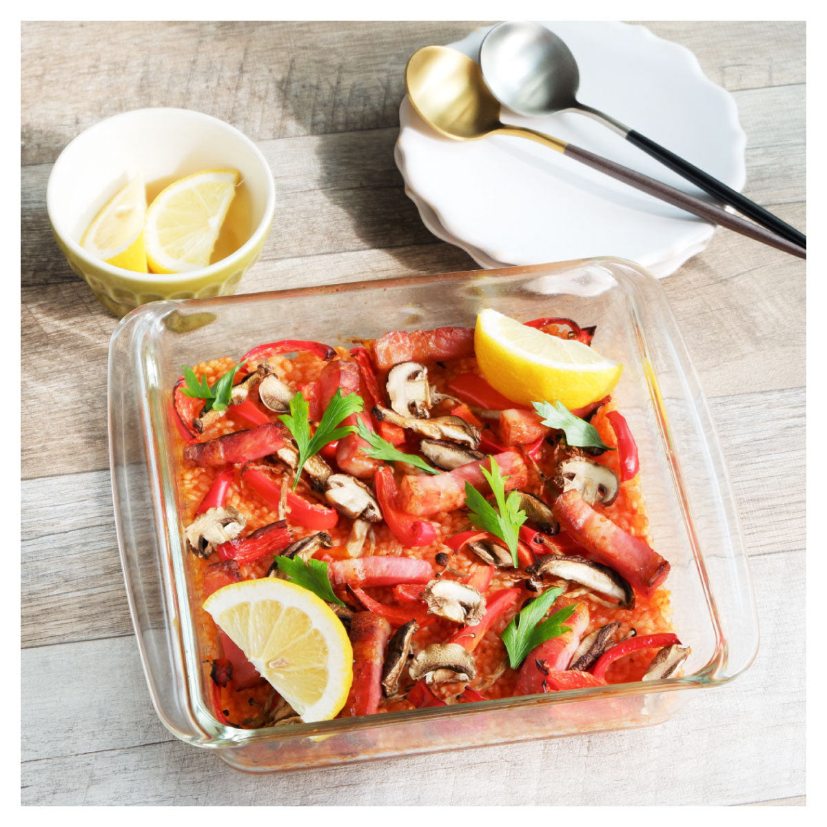・フライパンで調理してからオーブンに入れることで、表面はカリッとして、芯の残らない炊きあがりに。