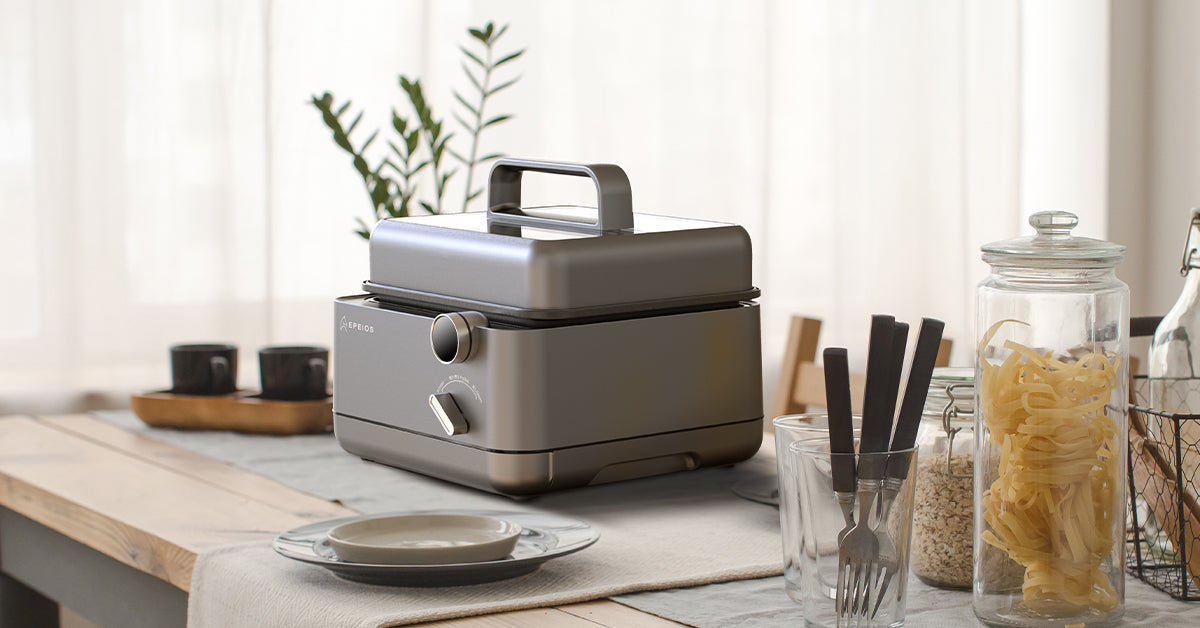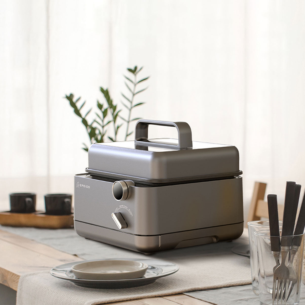 EPEIOS マルチスチームホットプレートは、焼く・煮る・蒸すの調理が可能な万能さと卓上に置いても邪魔にならないサイズ感で、毎日の温かい食卓を応援する調理家電。