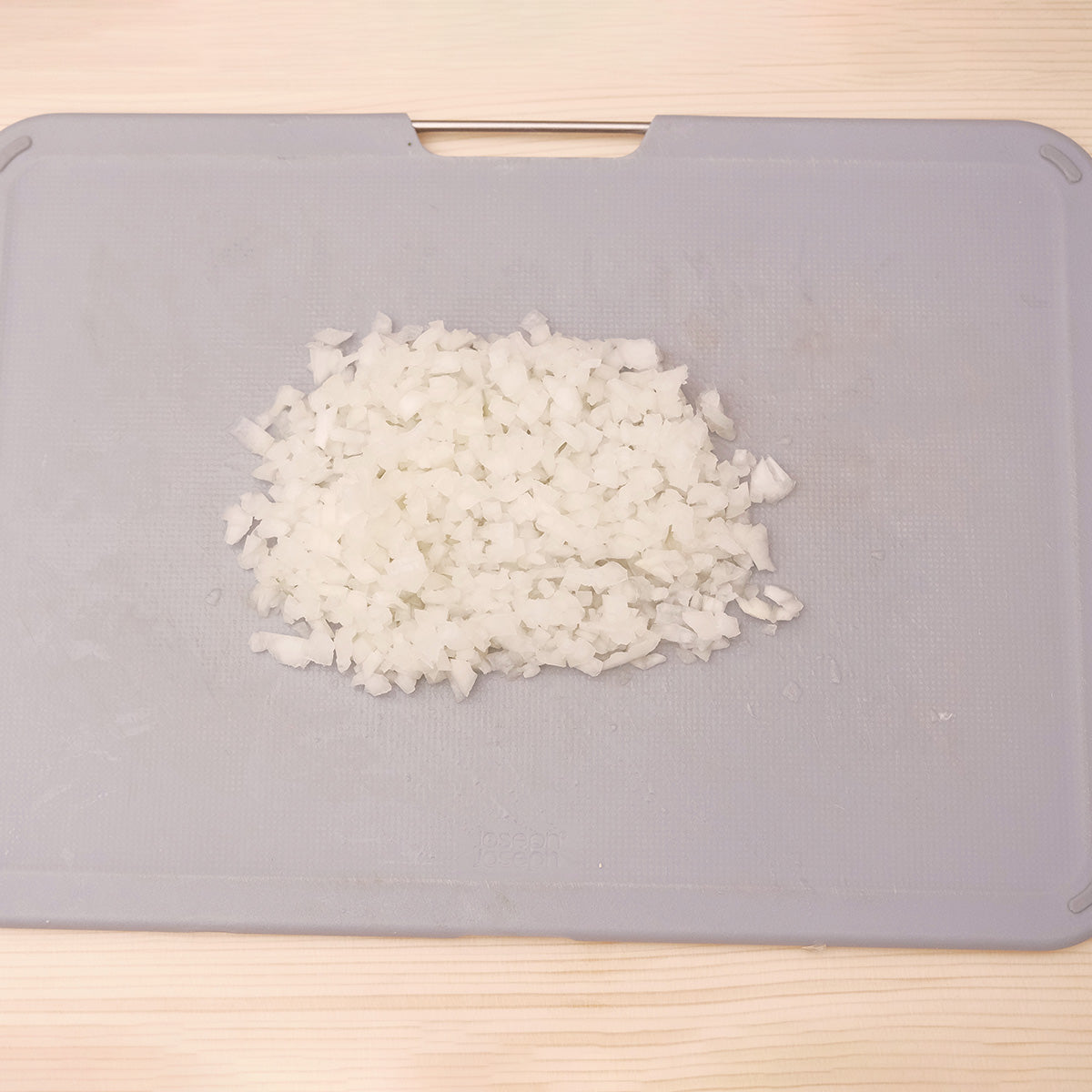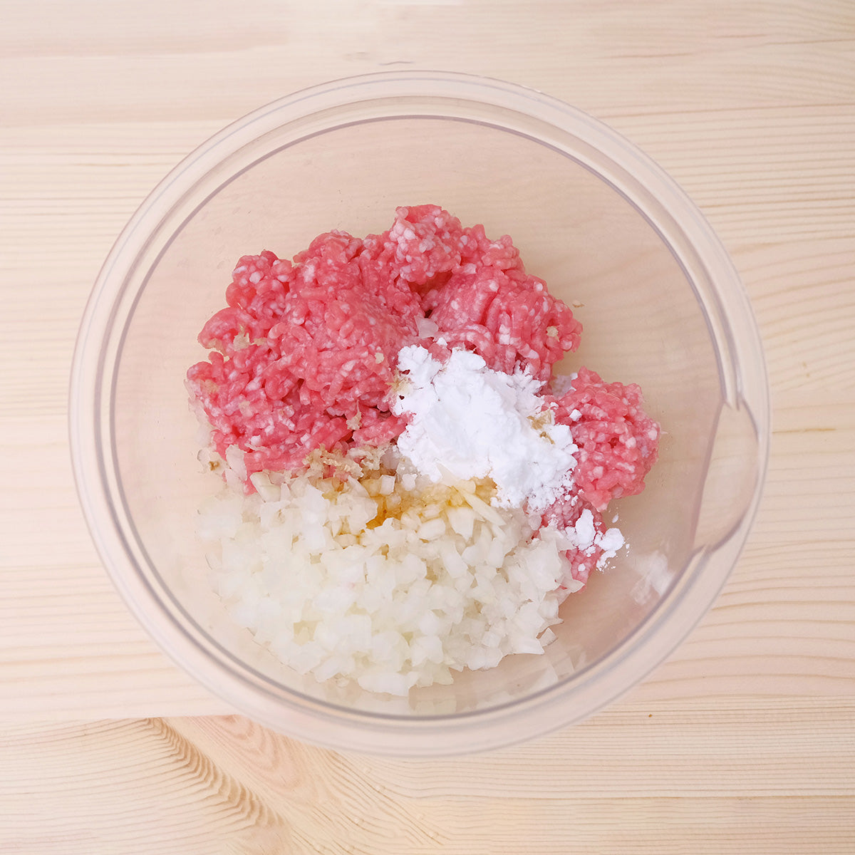 ミンチ肉を粘りが出るまで混ぜ合わせることで調味料がよくなじみ、なめらかな口当たりに仕上がります。