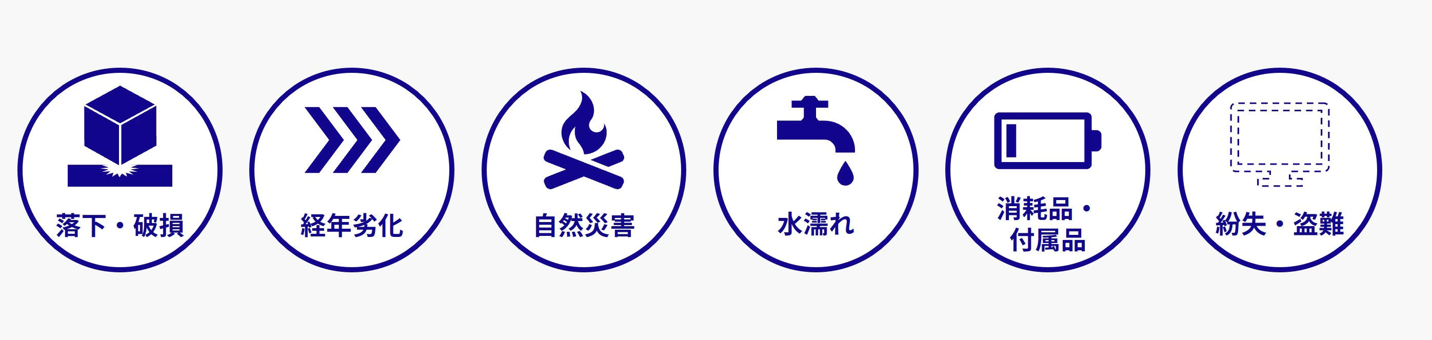 メーカー保証に準ずる自然故障を対象とした保証プランとなりますので、下記に該当する場合は保証対象外となります。