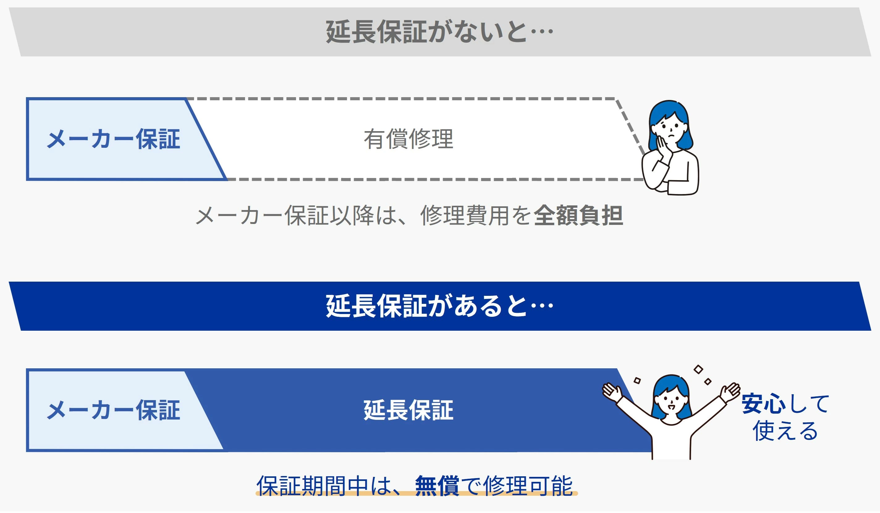 延長保証に加入することによってメーカー保証を一定期間延長することができます。