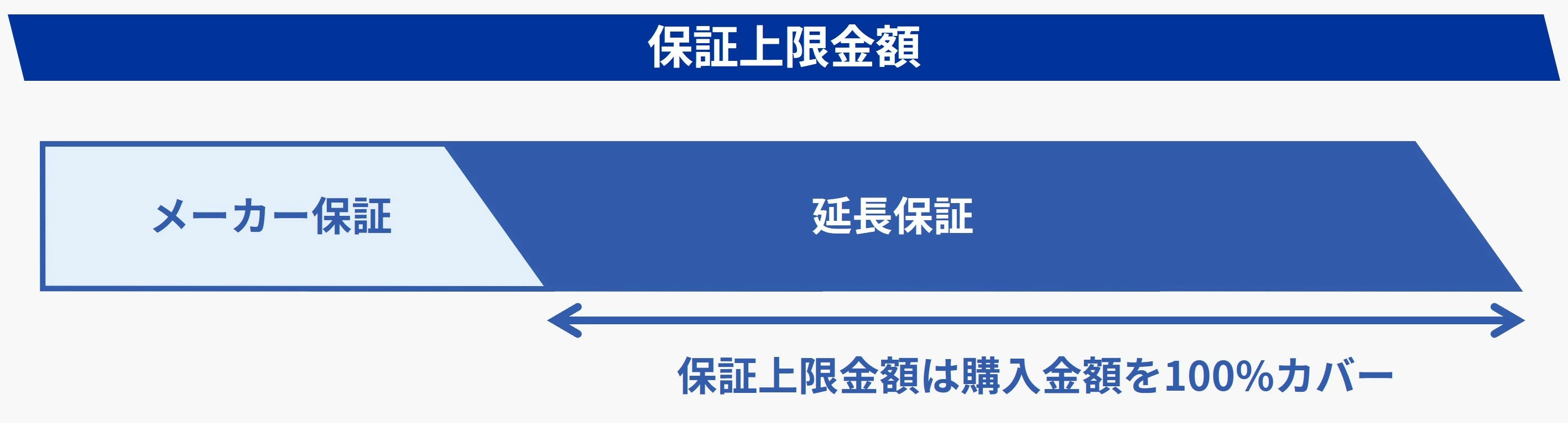 保証上限金額は製品購入金額となります。修理費用が保証上限金額を超える場合は、代替品(同等品・新品)を提供することで修理に代えさせていただきます。なお、代替品の提供が行われた場合には、保証サービスは終了となります。