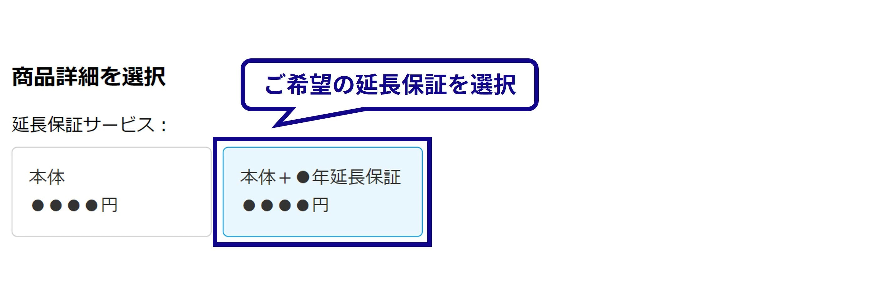 商品ページからご希望の延長保証を選択し商品とセットでご注文ください。表示される金額については、商品価格と延長保証の合計金額になります。
