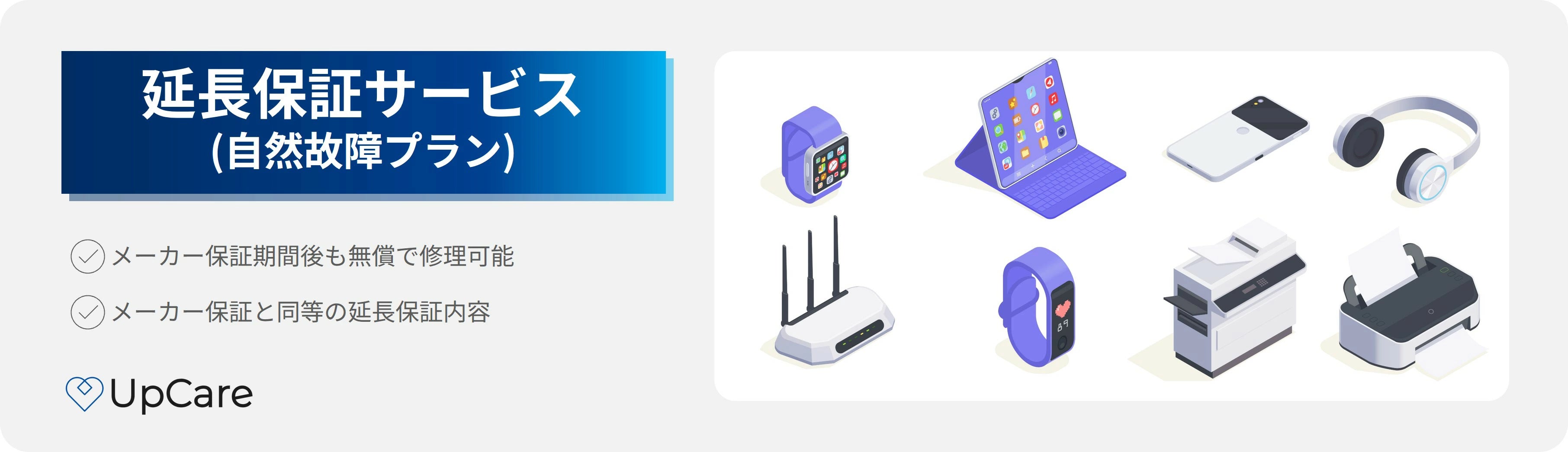 詳細に関しましては、こちらよりUpCare延長保証(自然故障)サービス規定にてご確認いただくようお願いいたします。