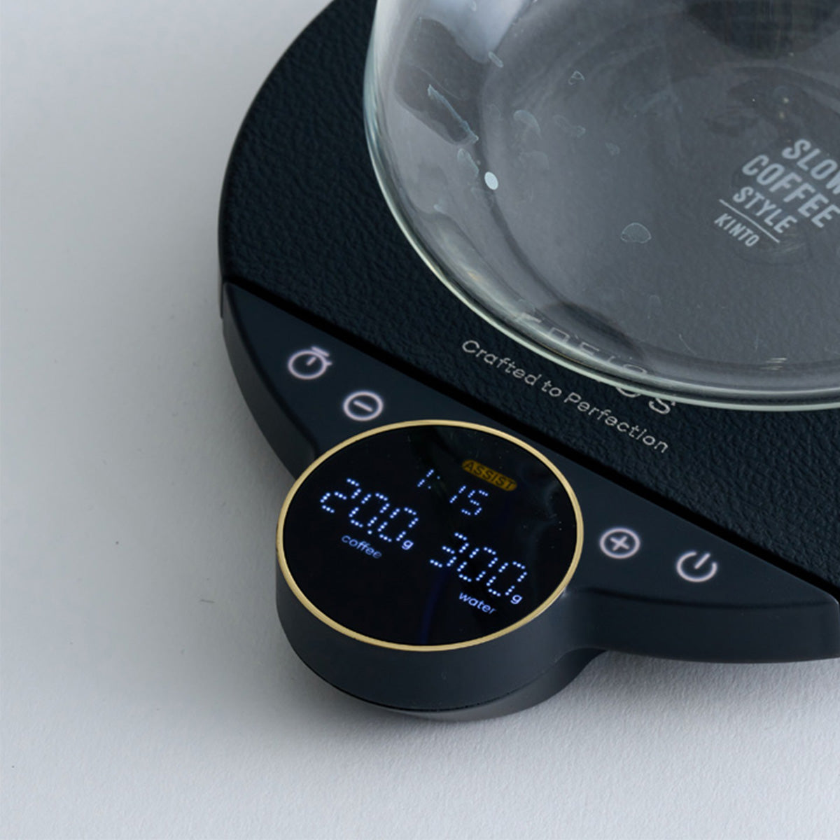 設定した抽出比率に合わせた目標注湯量の算出機能や注湯時の流速計測、注湯時間の計測など、理想のドリップのために従来はユーザー自身で行う必要があった複雑な計算や手間の掛かる測定を自動で行うサポート機能を複数搭載。さらには厳密な抽出比率も測定する本格的なモードも備えており、毎日のドリップをストレスなく楽しめるだけではなく、理想の一杯をとことん追求する本格志向なユーザーまで楽しめる、まさにどなたにもハンドドリップを存分にお楽しみ頂けるコーヒースケールとして誕生しました。
