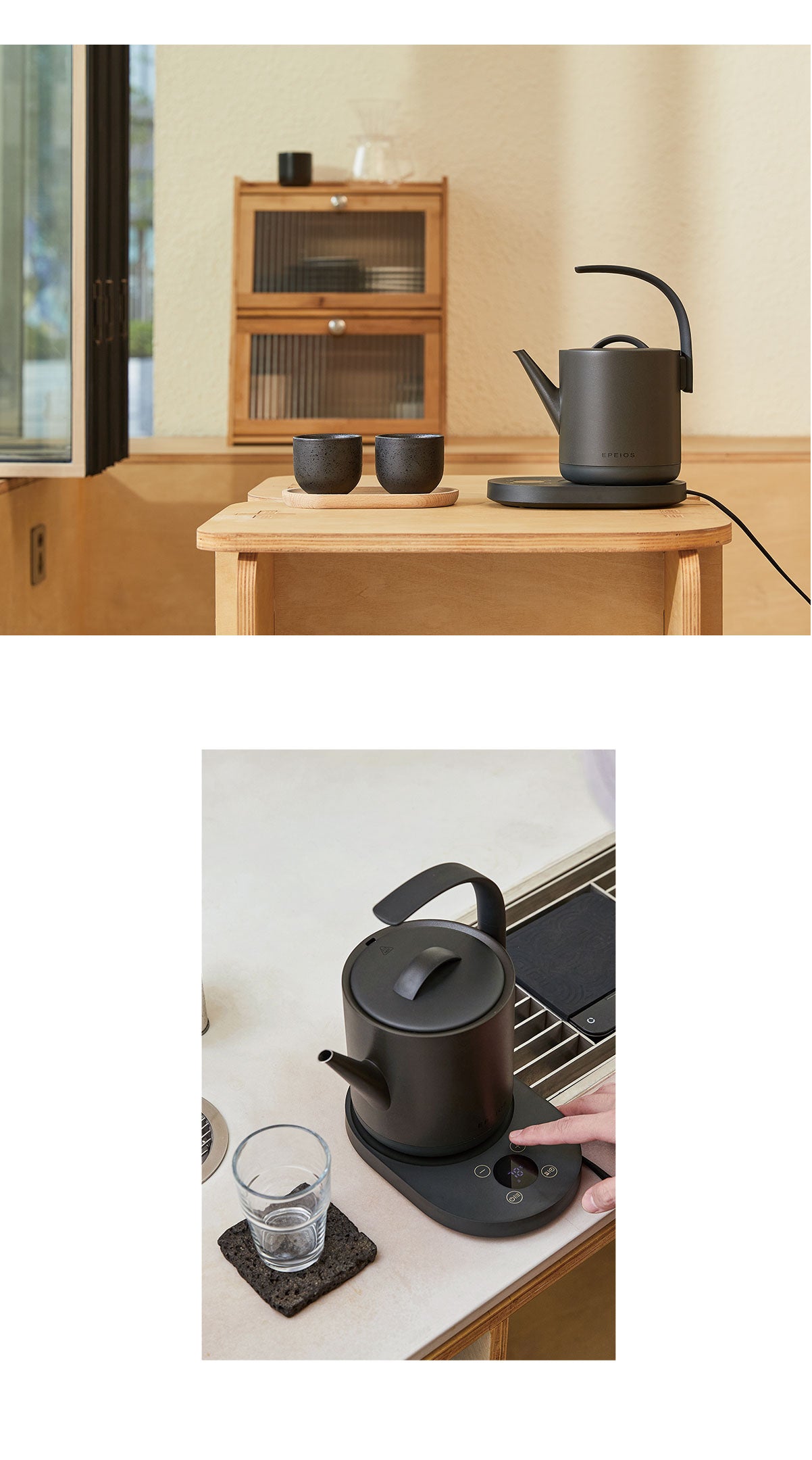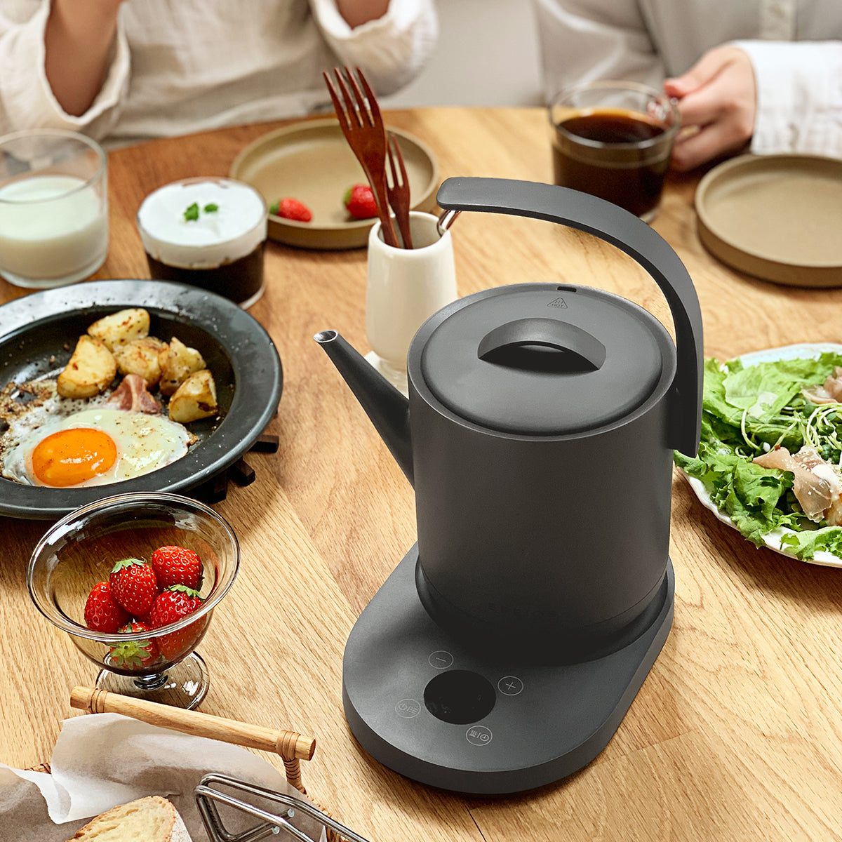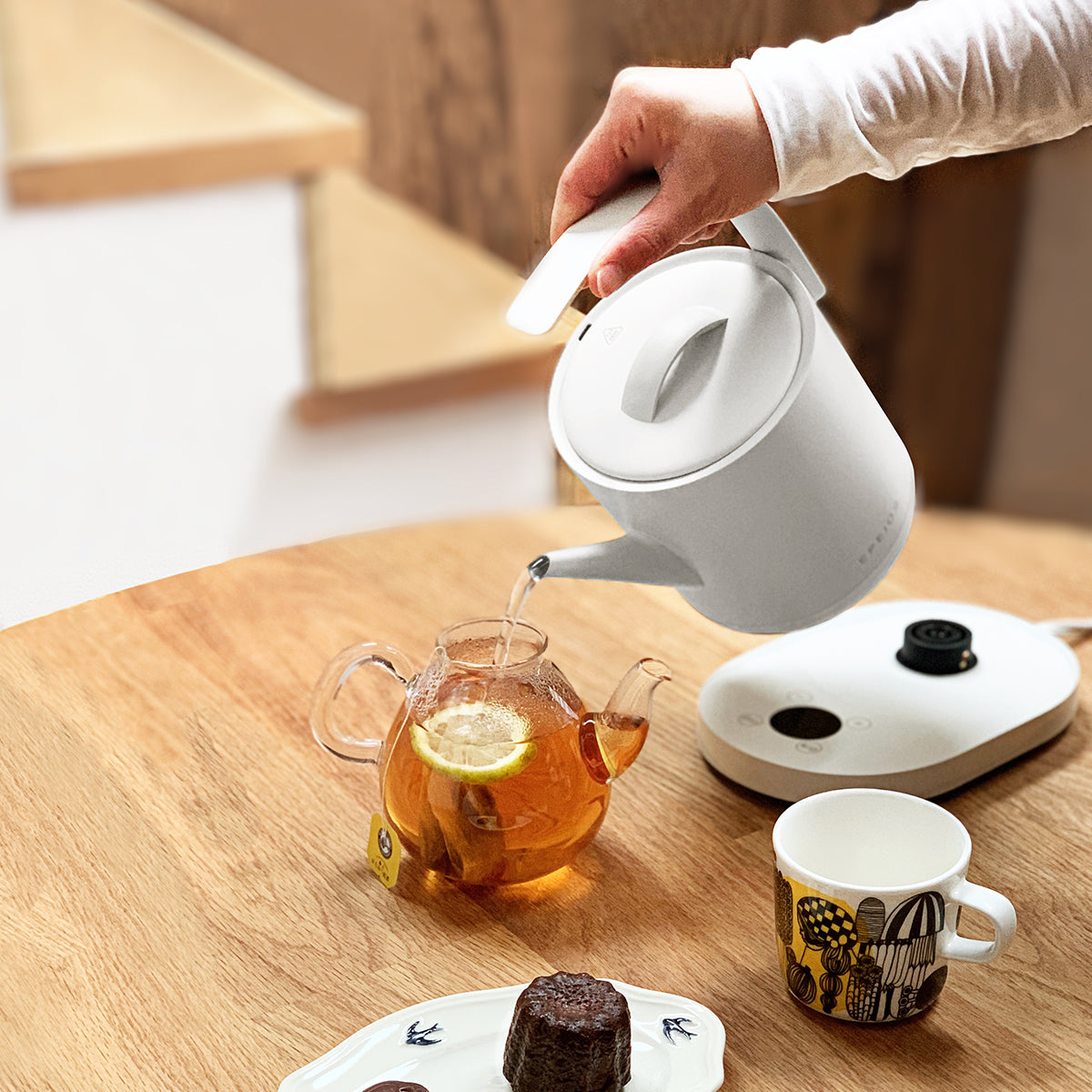 「出しっぱなし」にしておくことが多い電気ケトル。インテリアアクセントとして⽣活空間を崩さないように無駄を削ぎ落とした洗練されたデザイン(*)になりました。同時に、洗練されたデザインにしたことで、直感的に使えるシンプル操作となりました。