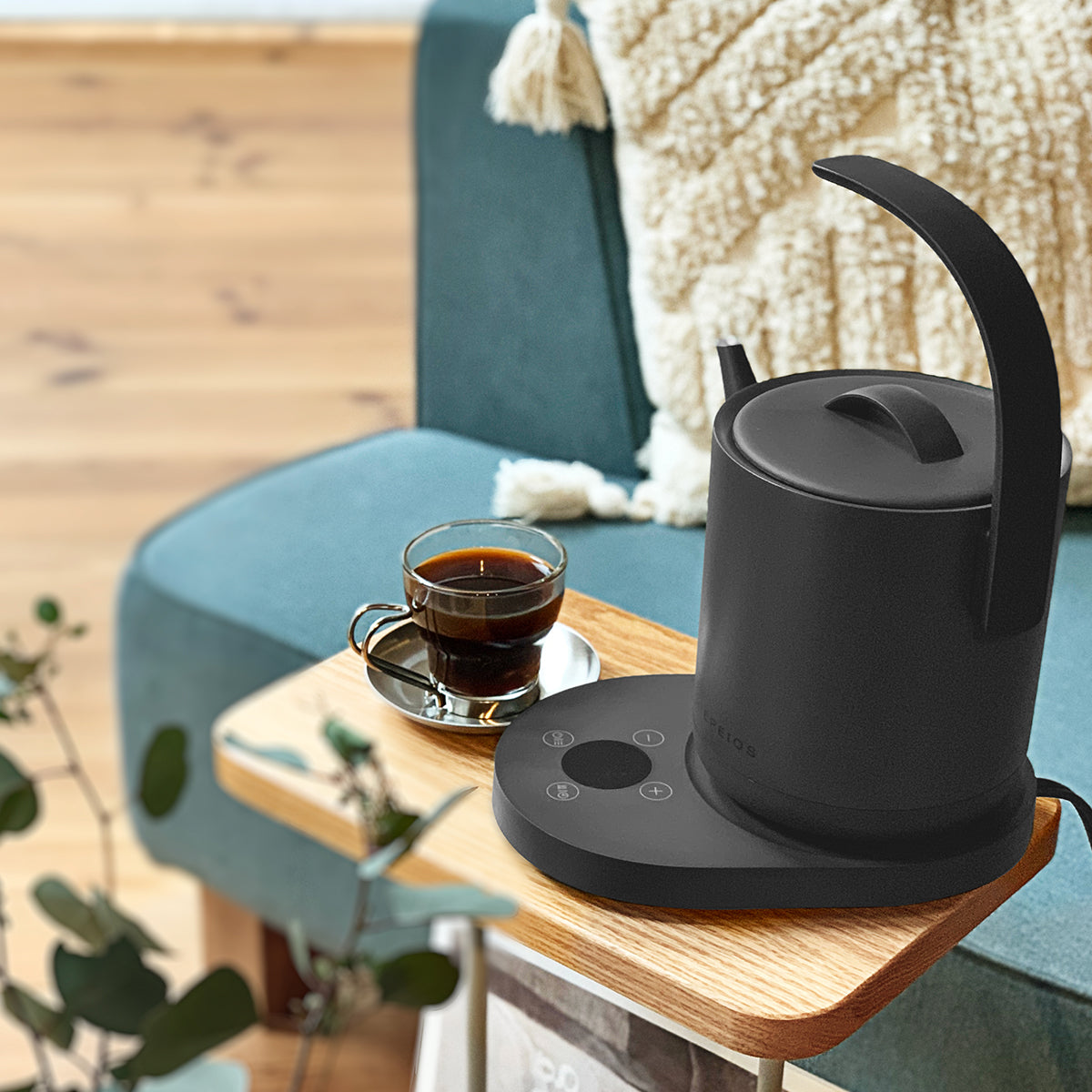 こだわりのコーヒーや紅茶、普段使いにも、おいしいひとときに寄り添うケトルとして「安心」という性能にもこだわりました。どんな人にも安心して使って欲しいから、みんなが心地よく過ごせるケトルを目指しています。