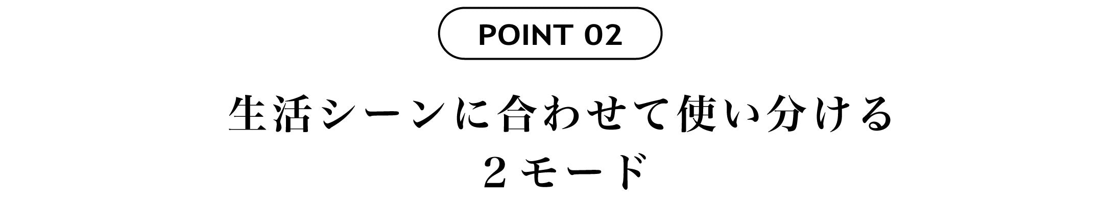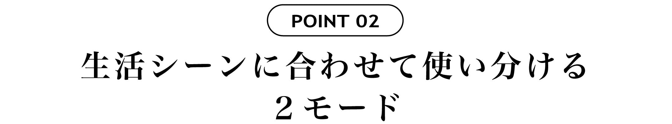 コンパクトでミニマルな機能にも関わらず、⽣活シーンに合わせて選べる2モードを搭載。