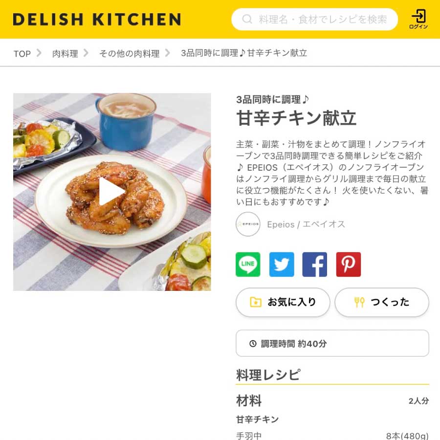 レシピ動画メディア 『DELISH KITCHEN』にてノンフライオーブンをご紹介頂きました。