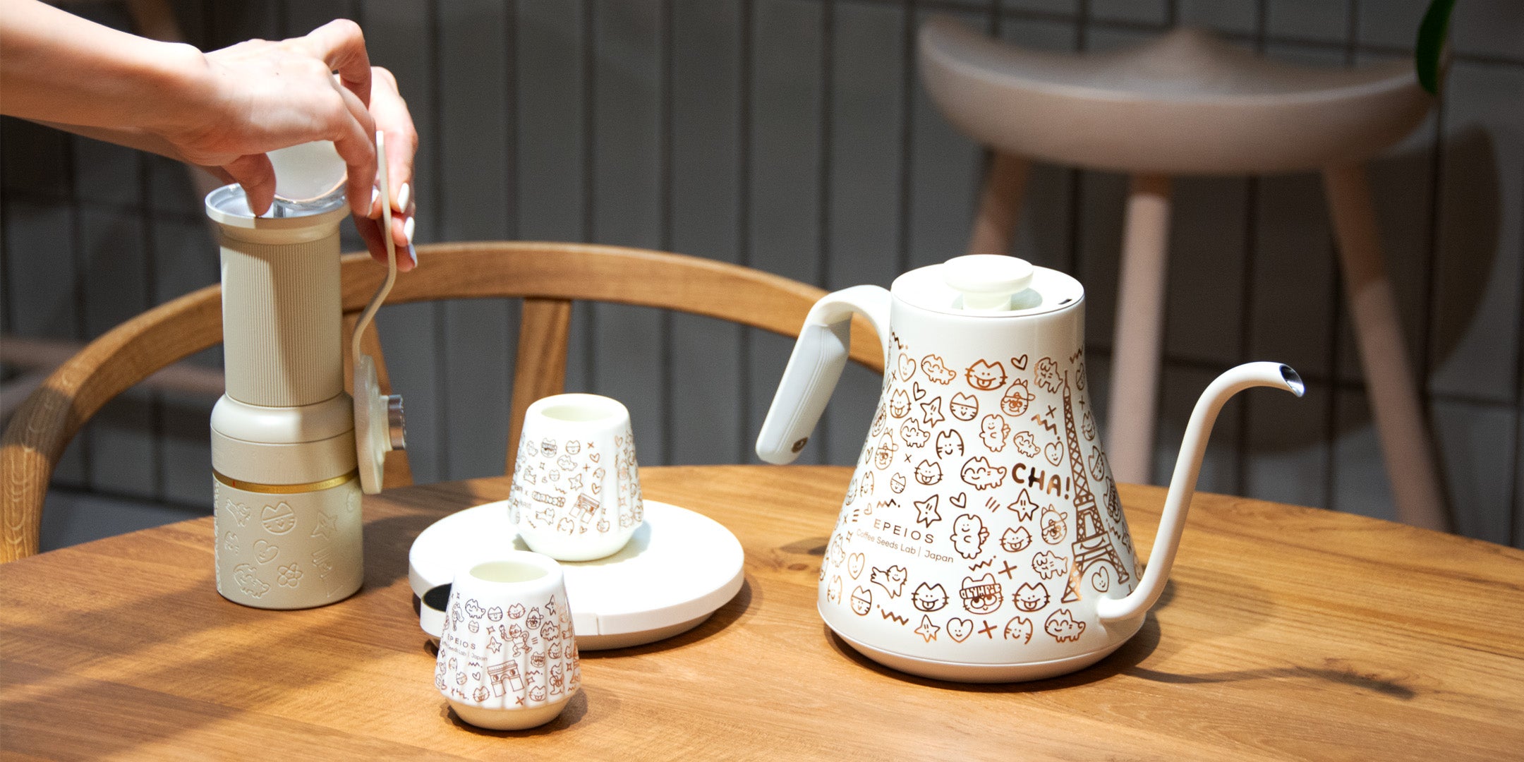 日本のアニメやキャラクター文化からインスパイアを受けた鮮やかさと遊び心に定評のあるCHANOIRの世界観がドリップケトルと融合したことで、アートと文化の融合を感じていただける仕上がりとなりました。