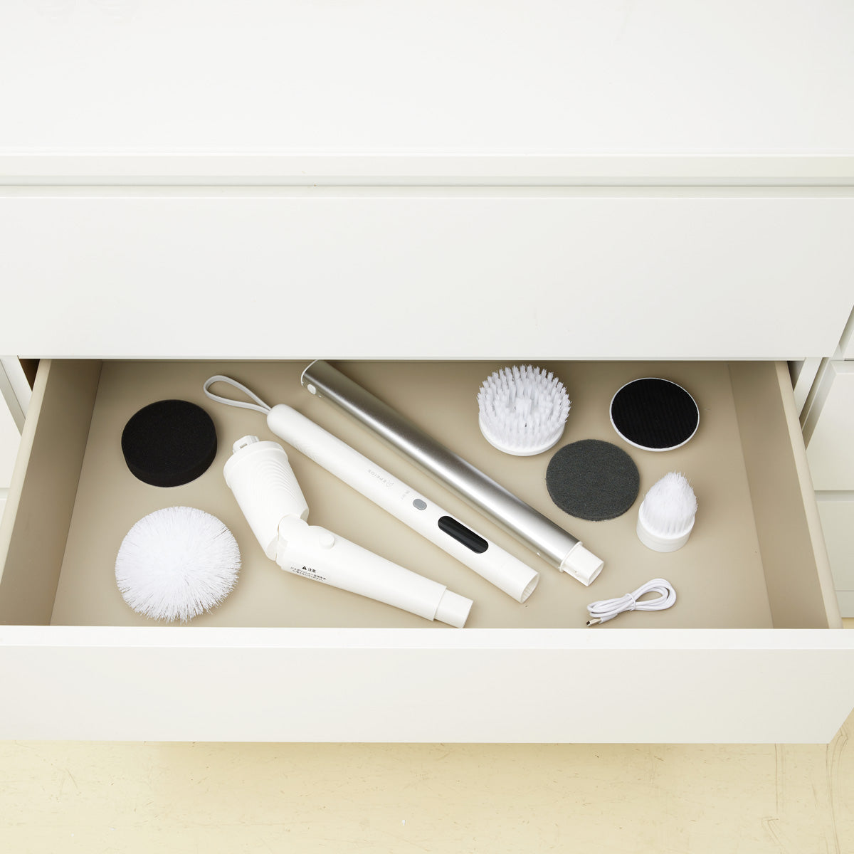 3種のブラシでバスタブや浴室の隅など、隅々まで楽々お掃除。
