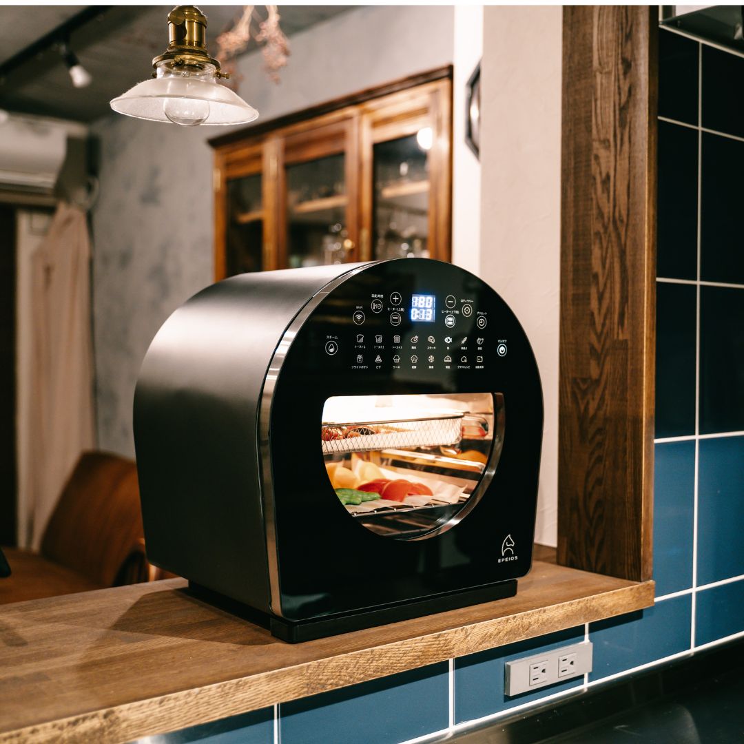 「ノンフライヤー」、「トースター」、「オーブン」、「発酵機」、「解凍機」、「フードドライヤー」の6つの家電機能をこの1台にまとめた、まるで魔法のような調理器具の誕生です。