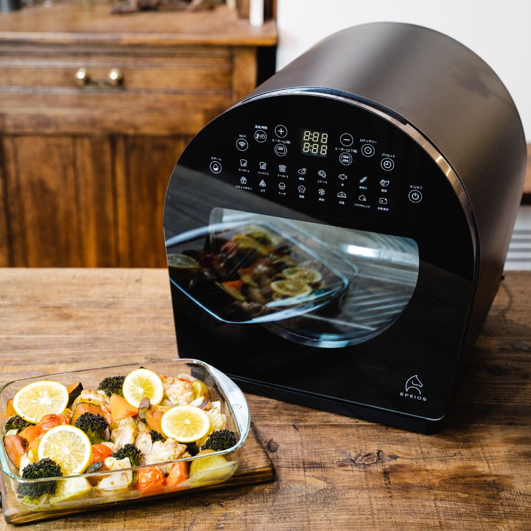 「ノンフライヤー」、「トースター」、「オーブン」、「発酵機」、「解凍機」、「フードドライヤー」の6つの家電機能をこの1台にまとめた、まるで魔法のような調理器具の誕生です。