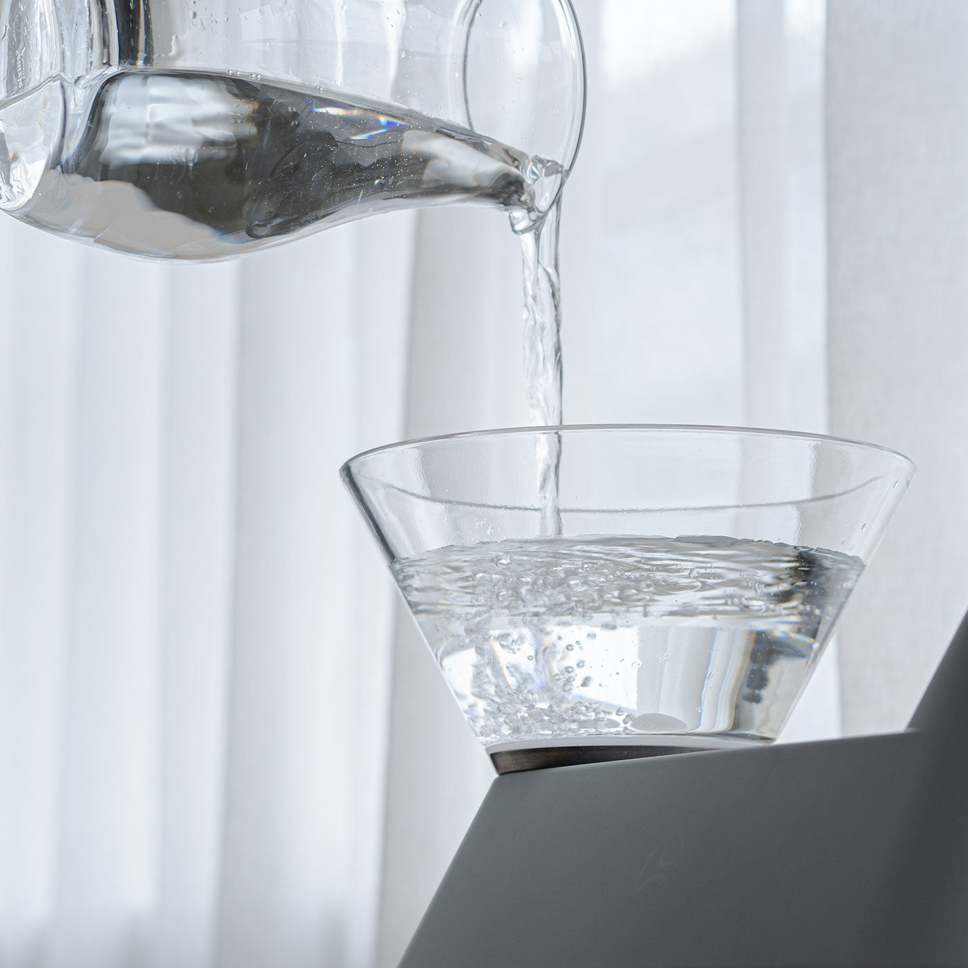 水を注いだ時に水と光が織りなす美しさとデザイン性を追求。