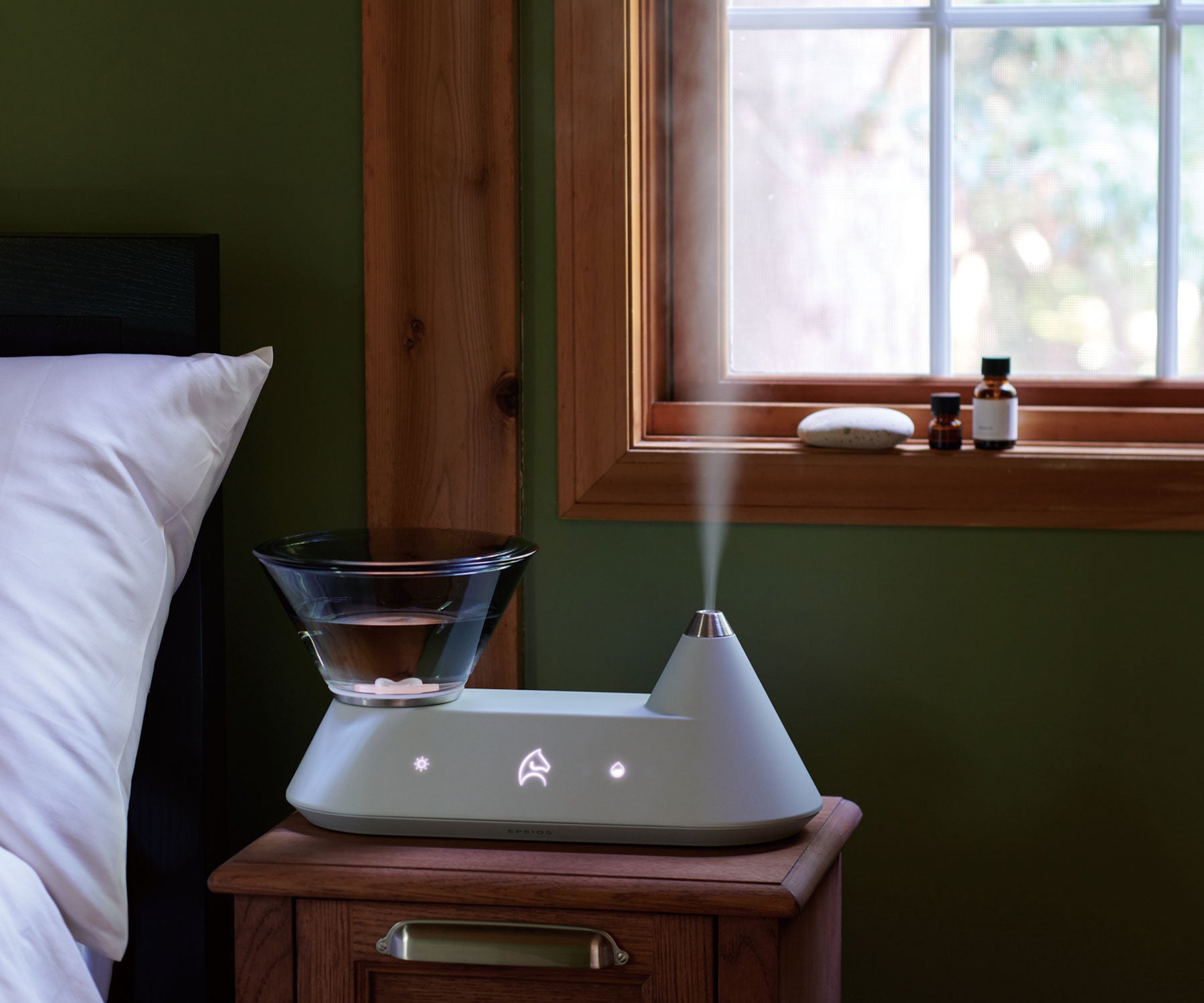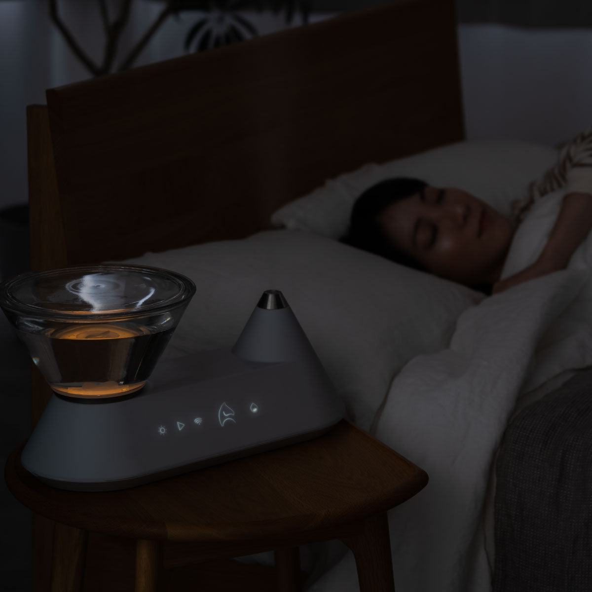 光、音、香りの機能を搭載している加湿器。お部屋の雰囲気や寝る前の気分にあわせて使い分けていただけます。