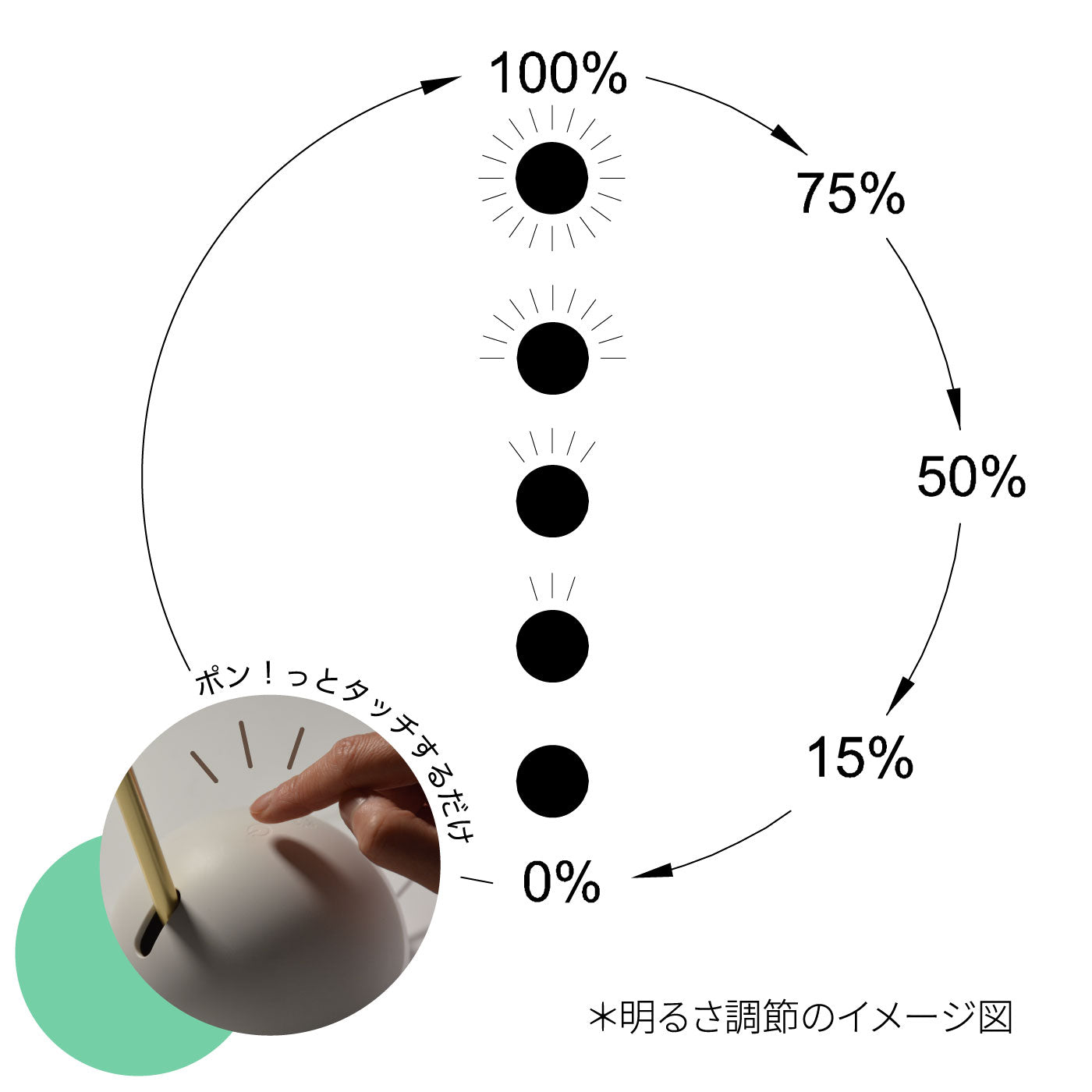 LEDライトの明るさを100%→75%→50%→15%→OFFの4段階調光が可能