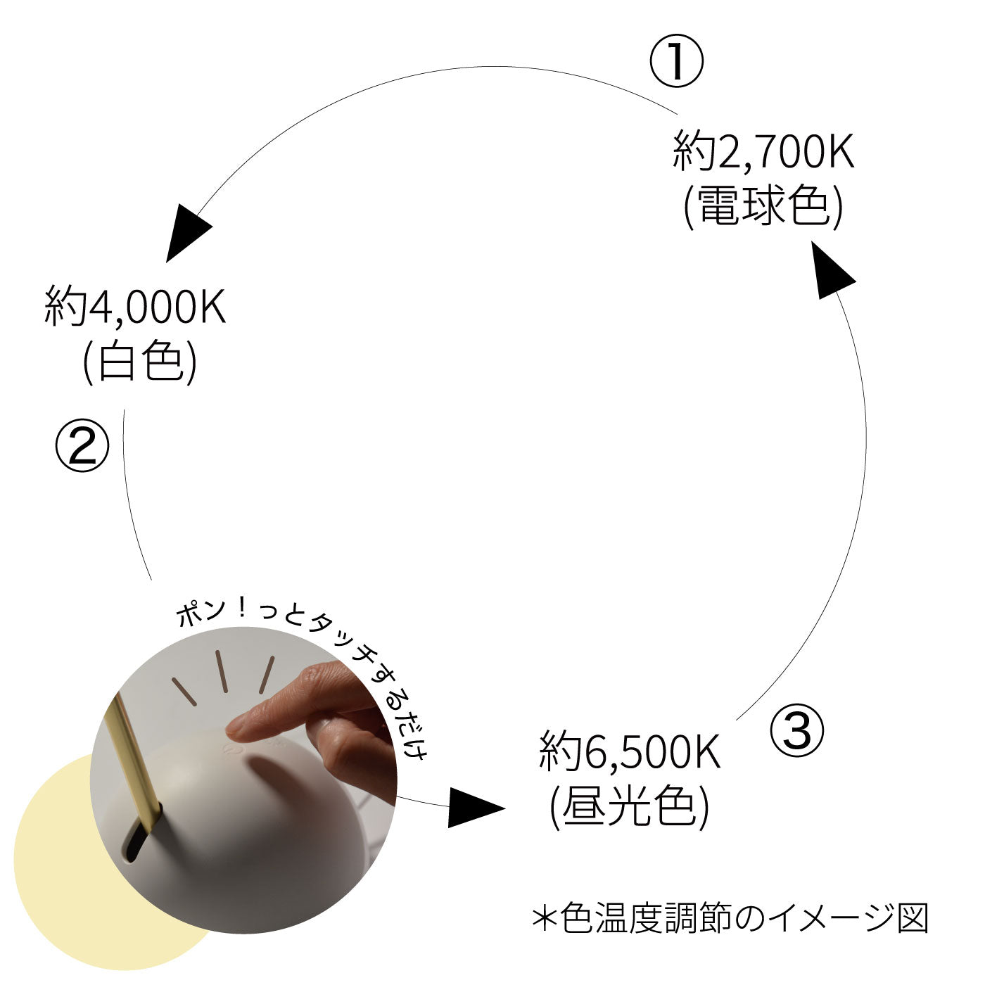 色温度(ライト色)を電球色(約2,700K)→白色(約4,000K)→昼光色(約6,500K)の順で調整が可能