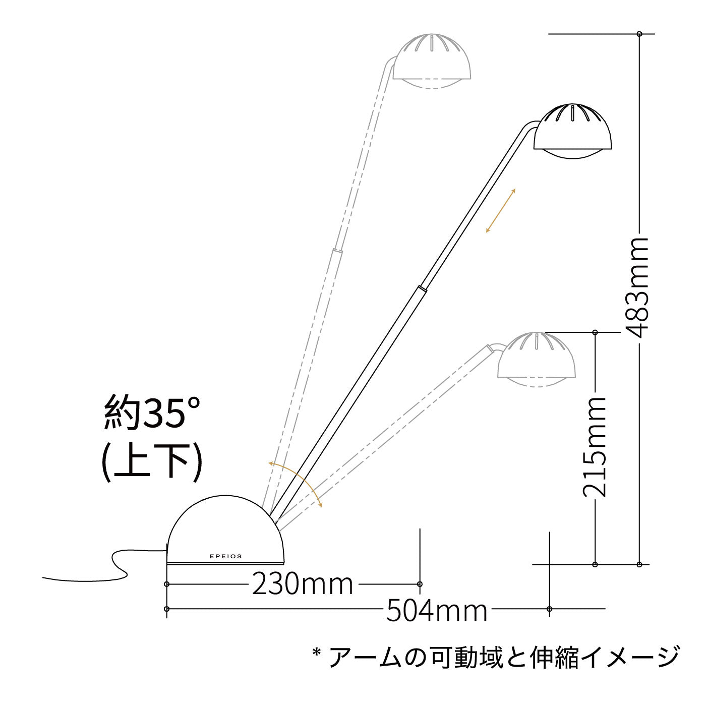 アーム部の伸縮調整(約25.5cm〜44cm)