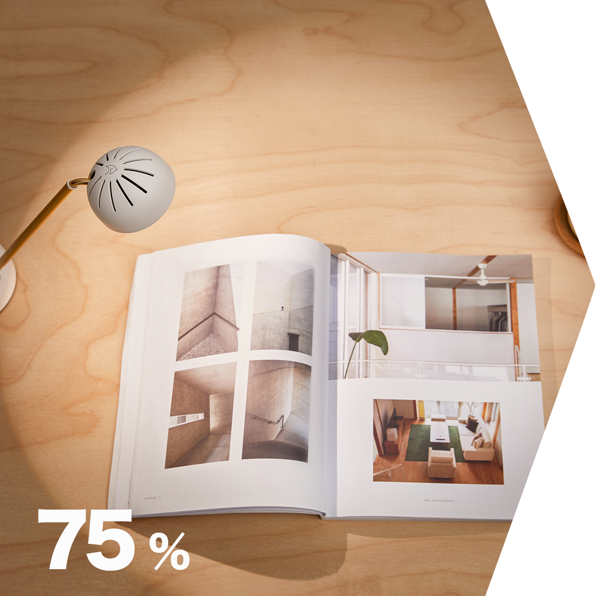 勉強・読書・細かい作業をするのに最適な照度基準(JIS規格AA形相当)を満たし、ちらつき(フリッカー*)を抑えたことで目の疲れを軽減、集中しやすい空間づくりを可能。