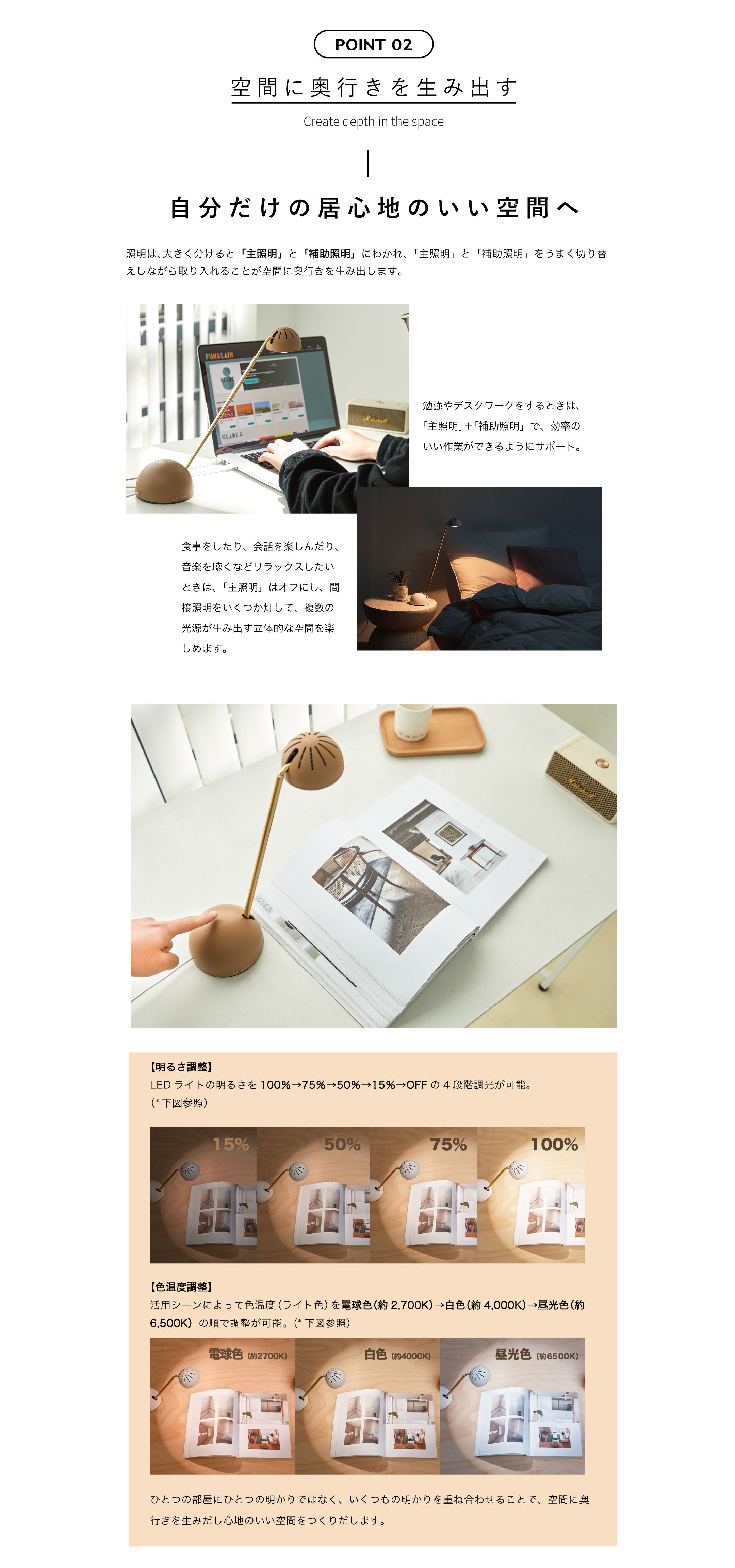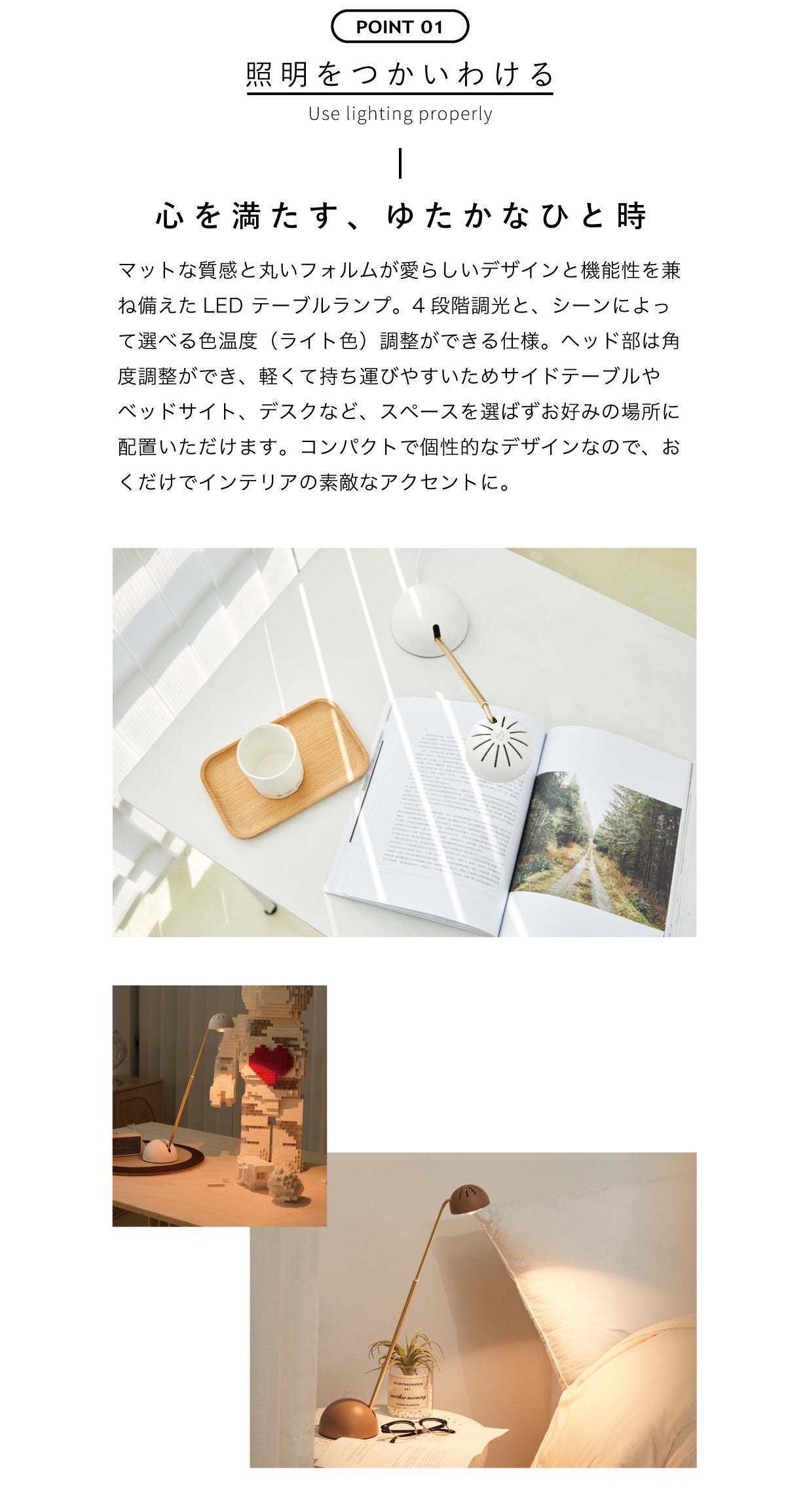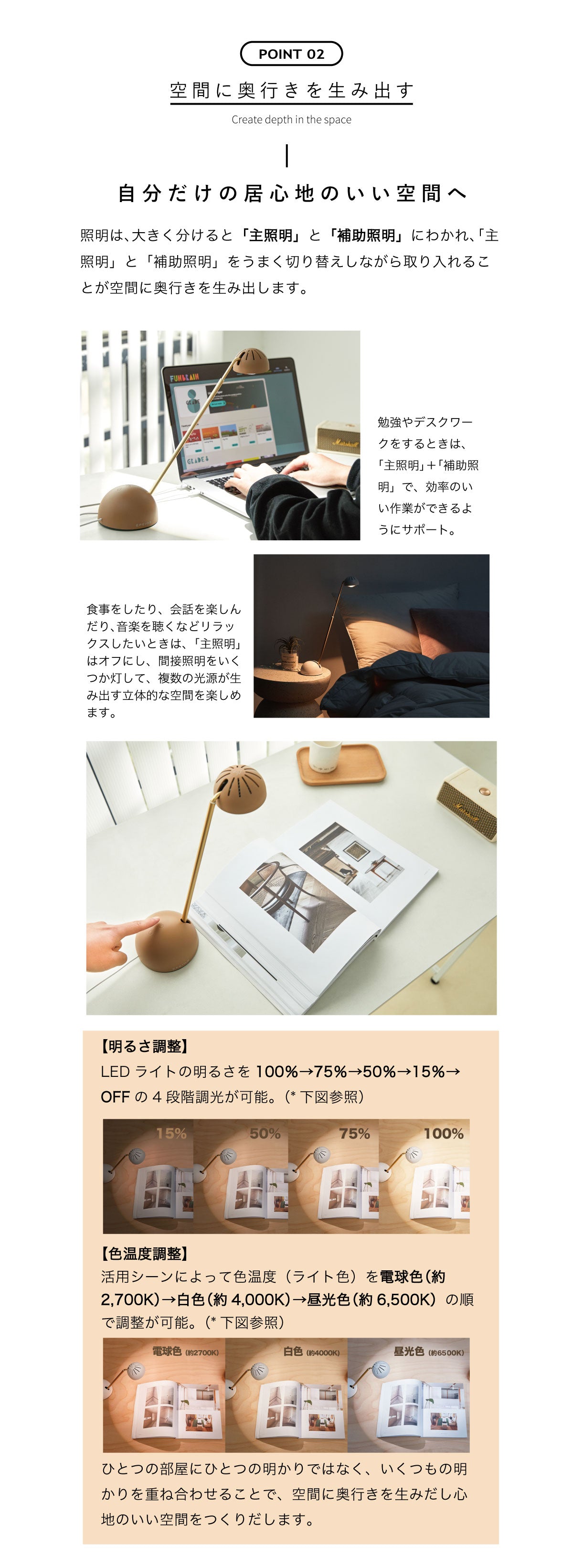 照明器具の役割ばかりにフォーカスされがちですが、⽇常⽣活において“欲しい時に、欲しい場所に、求めるシーンに”必要な光をサポートするテーブルランプが誕生しました。
