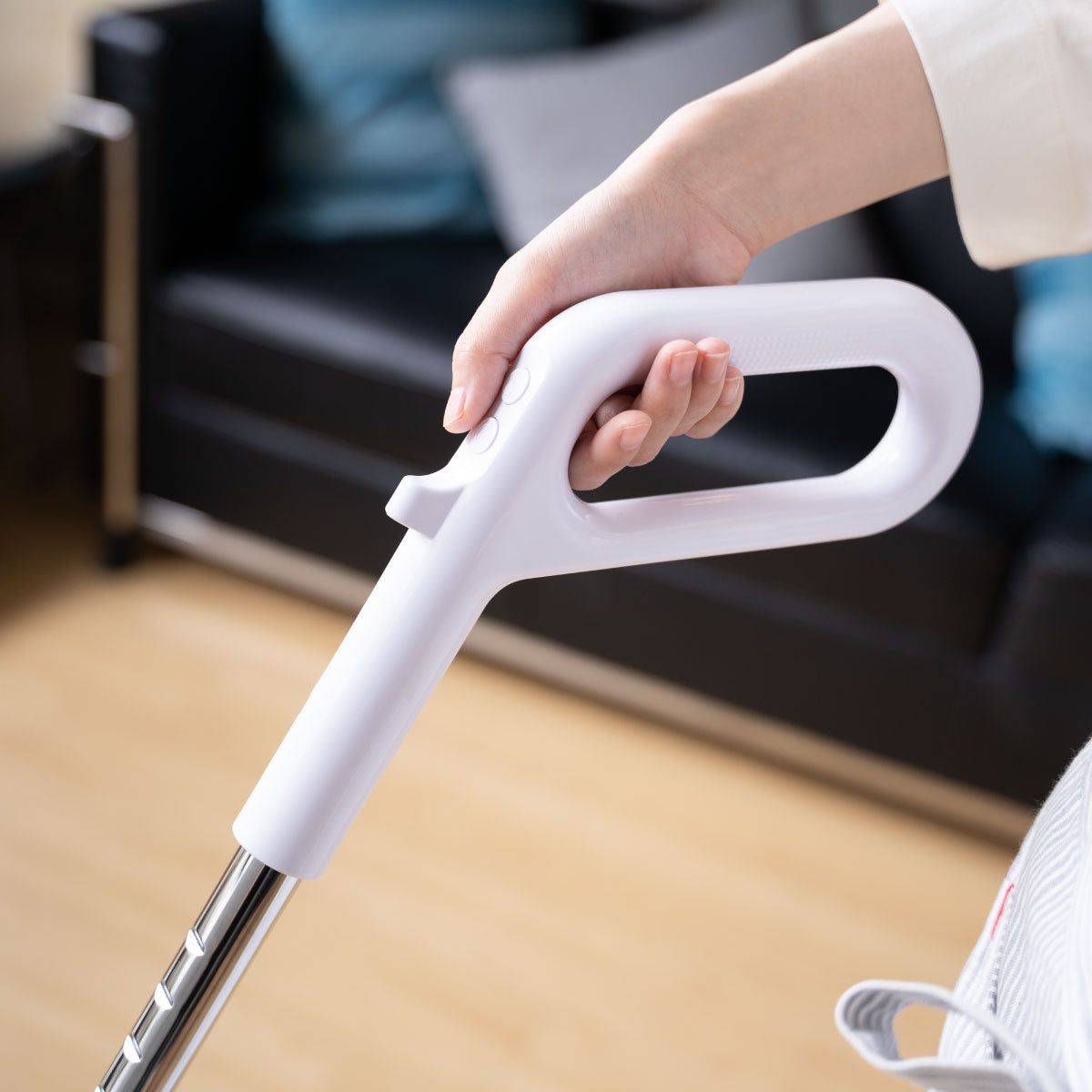持ちやすいグリップのハンドルで⽚⼿でも楽々操作。