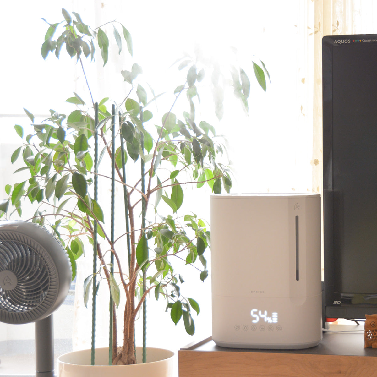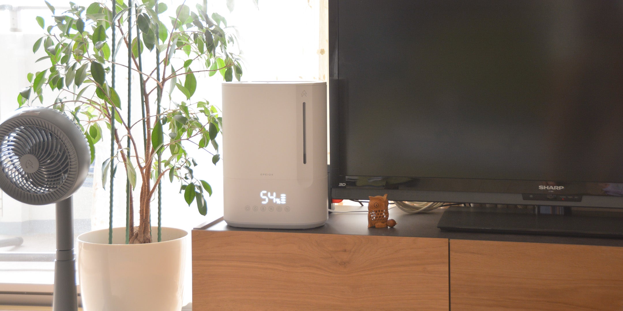 超音波加湿とヒーター加湿を組み合わせたハイブリッド式で、部屋の湿度を効率的に保ちます。