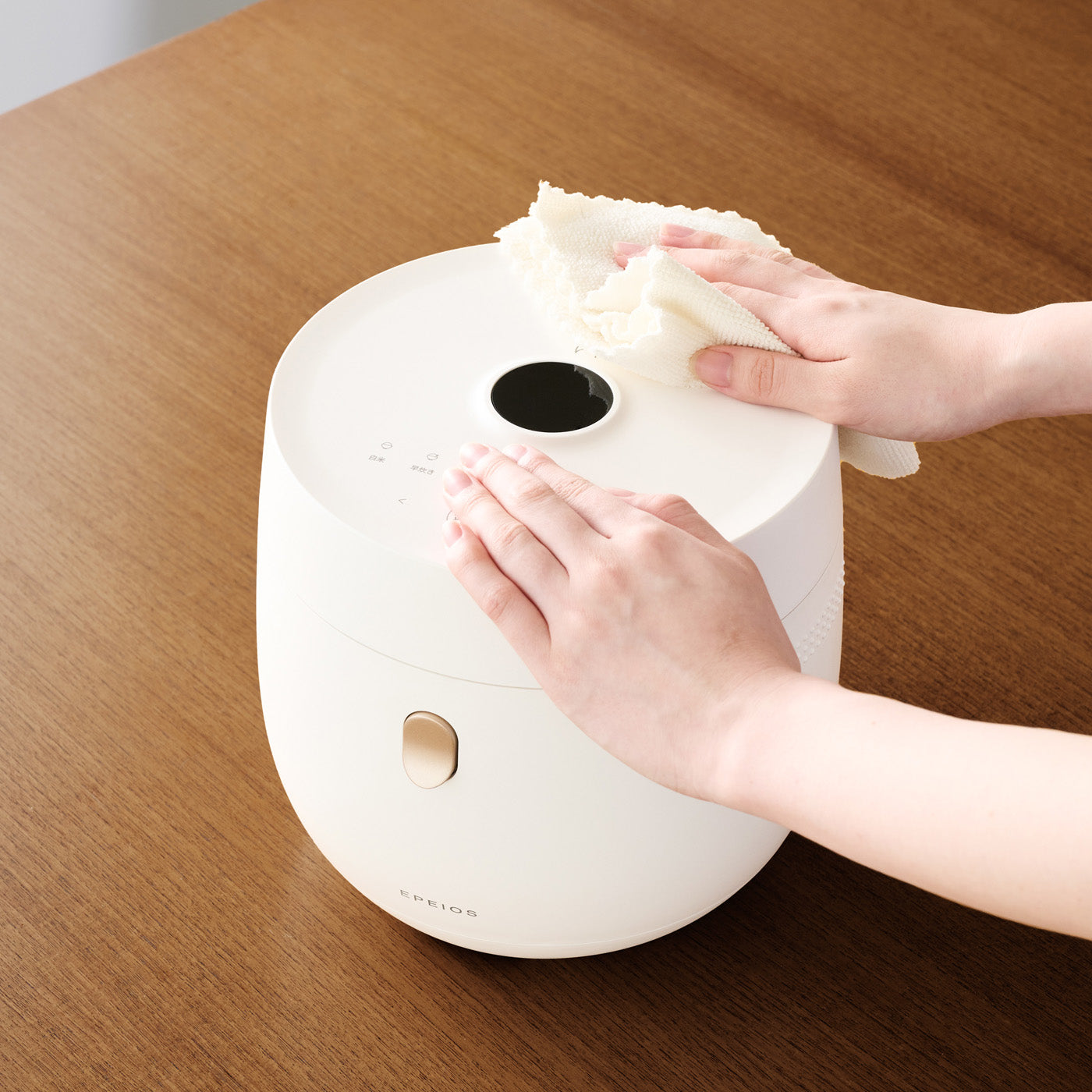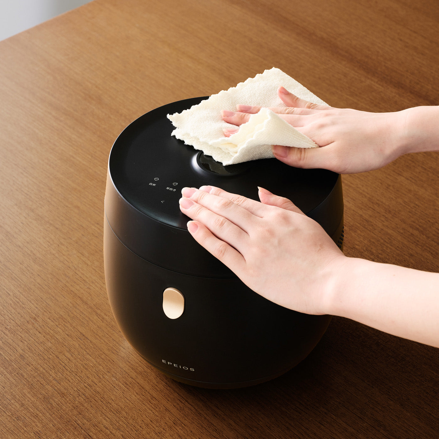 表面はフラットデザインなため、汚れが拭き取りやすく。洗い物は内釜と内ぶたのみなのでお手入れも簡単です。