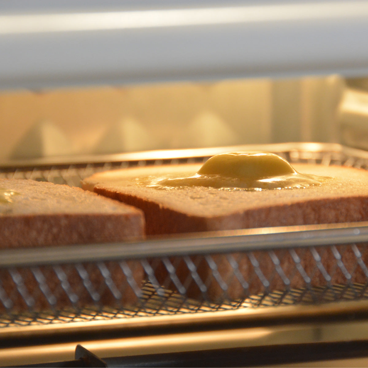 スチーム機能(1回の給水で最大10mL)を使えば、水分を逃さず高火力で加熱するので、外はカリッと、中はもっちり、まるで焼き立てのようなトーストの出来上がり。