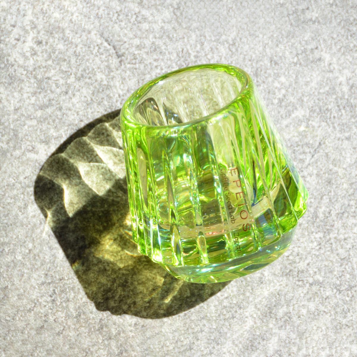 特殊コーティングをしたオーロラシリーズの中でも、特に色合いに変化をつけ、まるで夜空に輝くオーロラのように、光加減によって見える色が変化します。