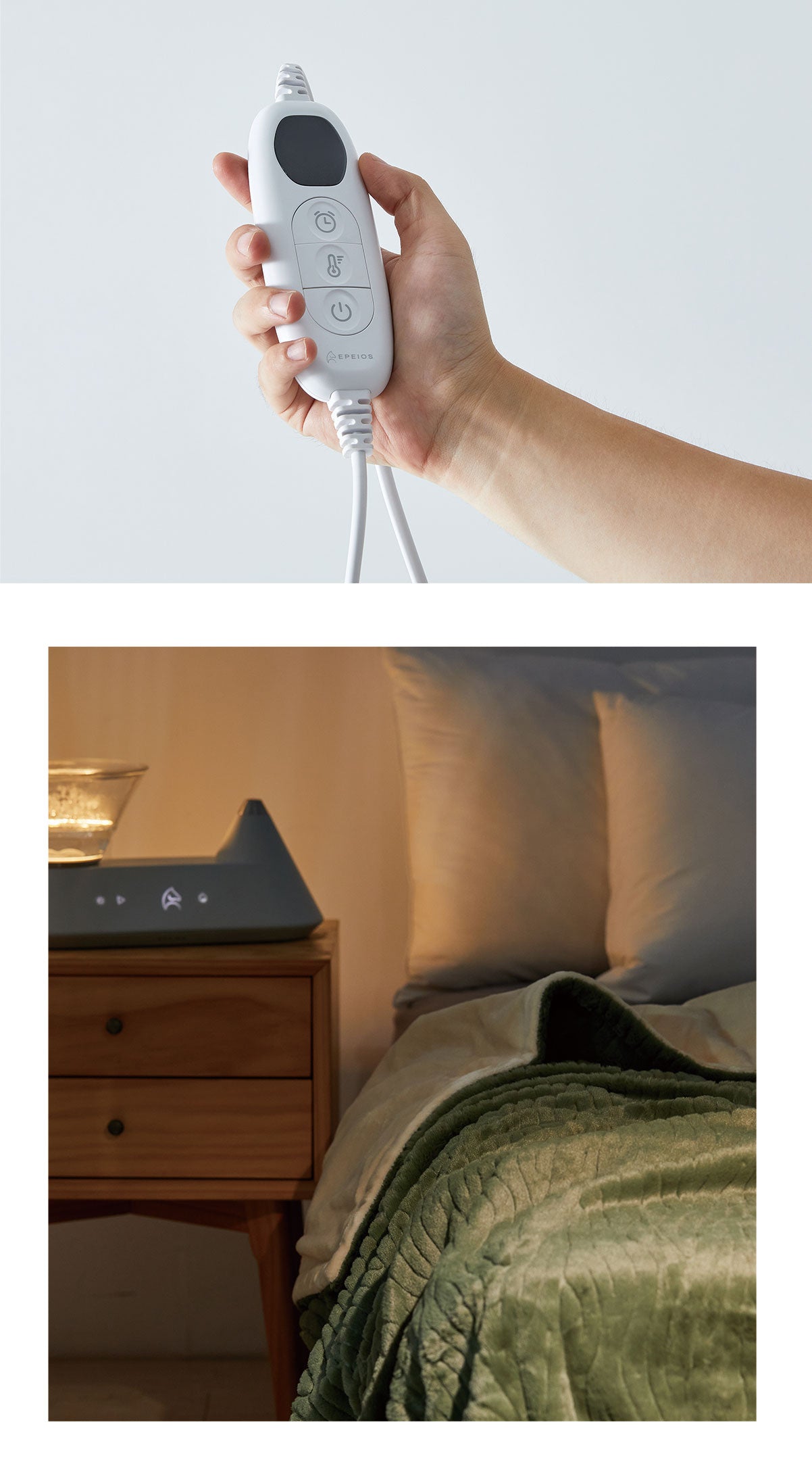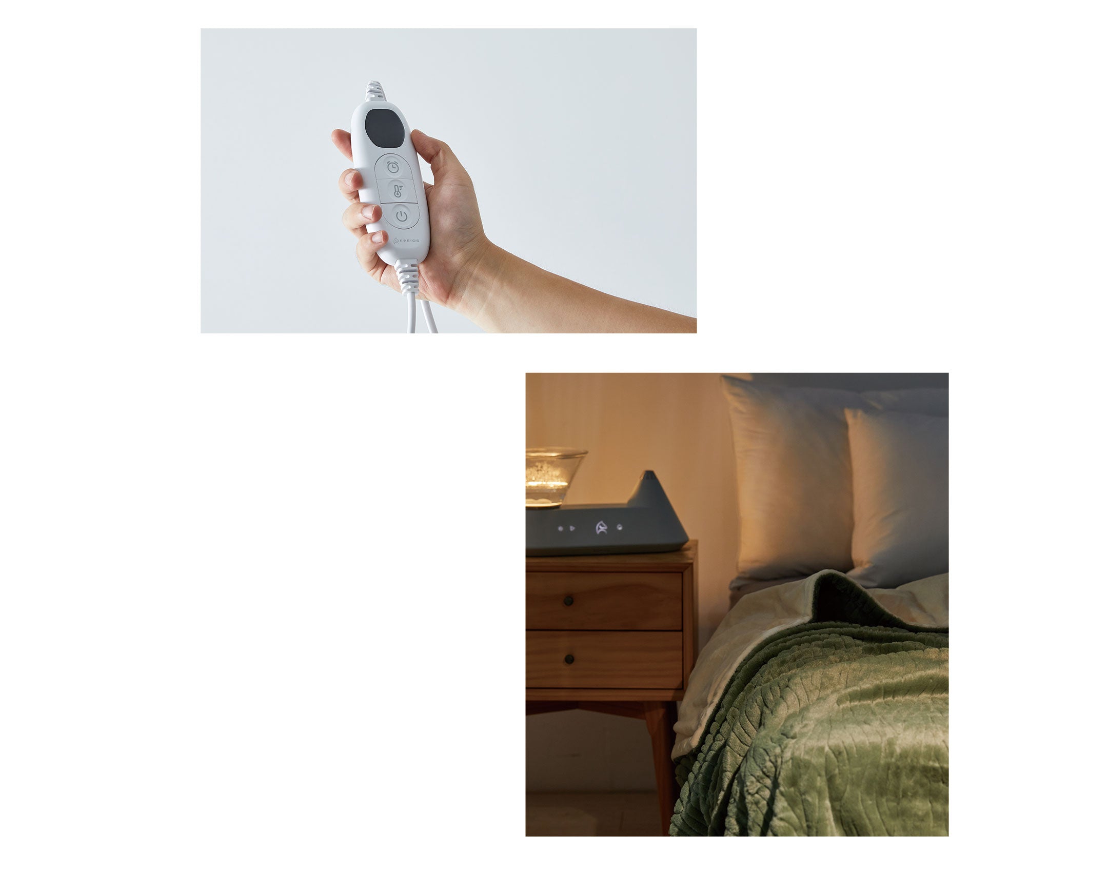1〜9段階の細かい温度調整と最⻑12時間連続使⽤すると自然にOFFになる安⼼機能で、就寝時も朝まで安心。
