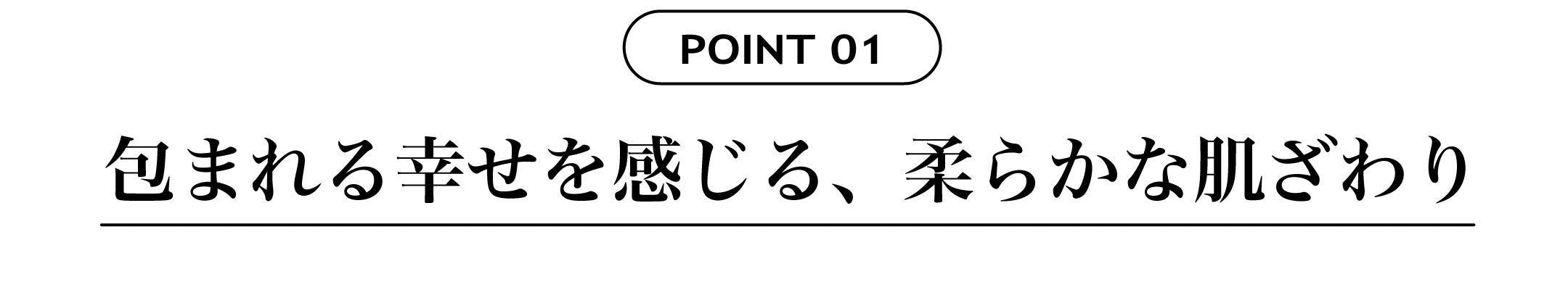 ふんわり起⽑の⽐較的⻑⽑の素材を使⽤したことで、柔らかな肌ざわりを追求。いつまでも触り続けたくなるような触り心地です。洗濯機で丸洗いしても、柔らかな肌ざわりはそのままで清潔です。いつまでも「包まれる幸せ」をお届けします。