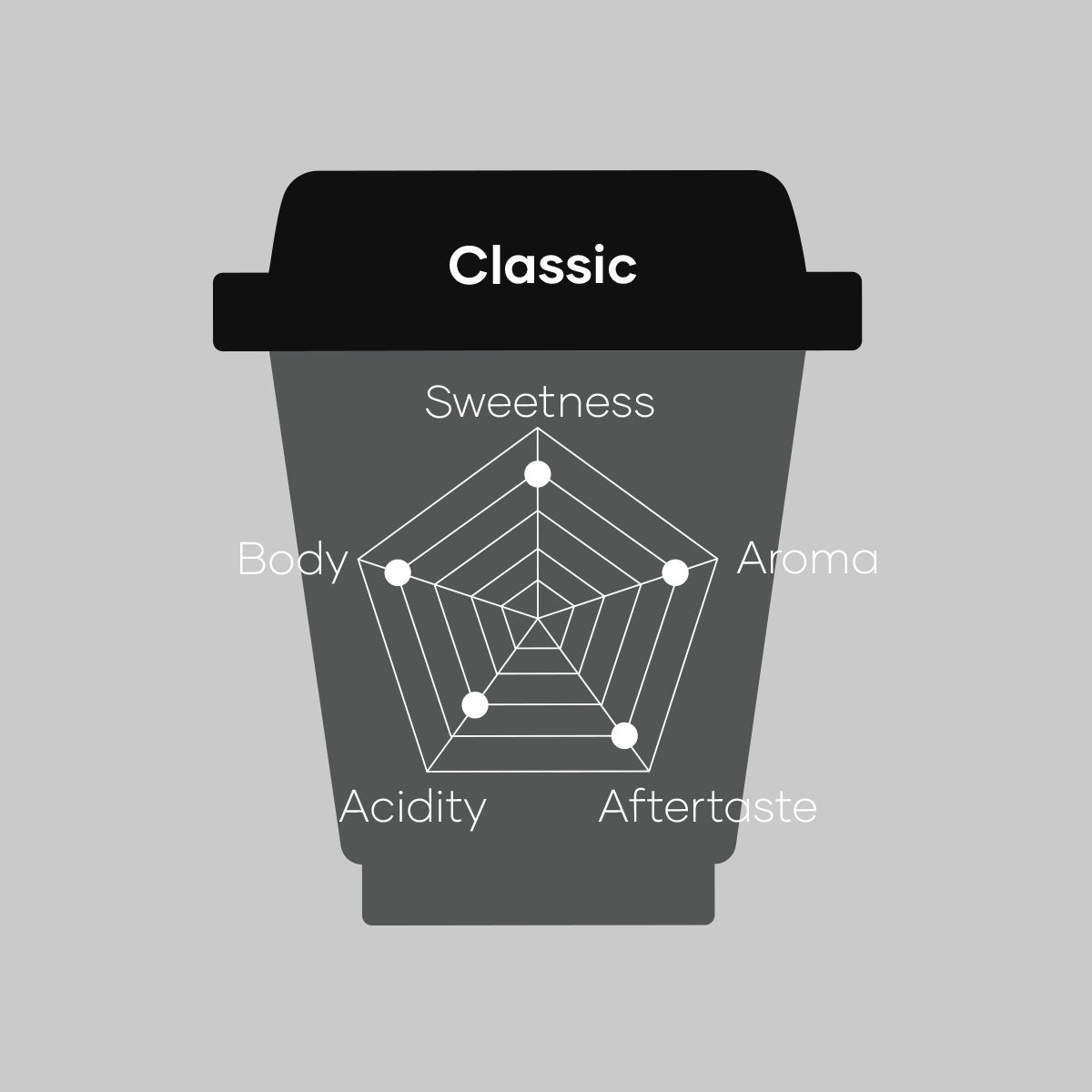 味は3種類。バランスが良く、毎日飲みたくなる「クラシック」、深煎りの力強さがクセになる「フュージョン」、華やかな香りが広がる「エチオピア」シングルオリジン。