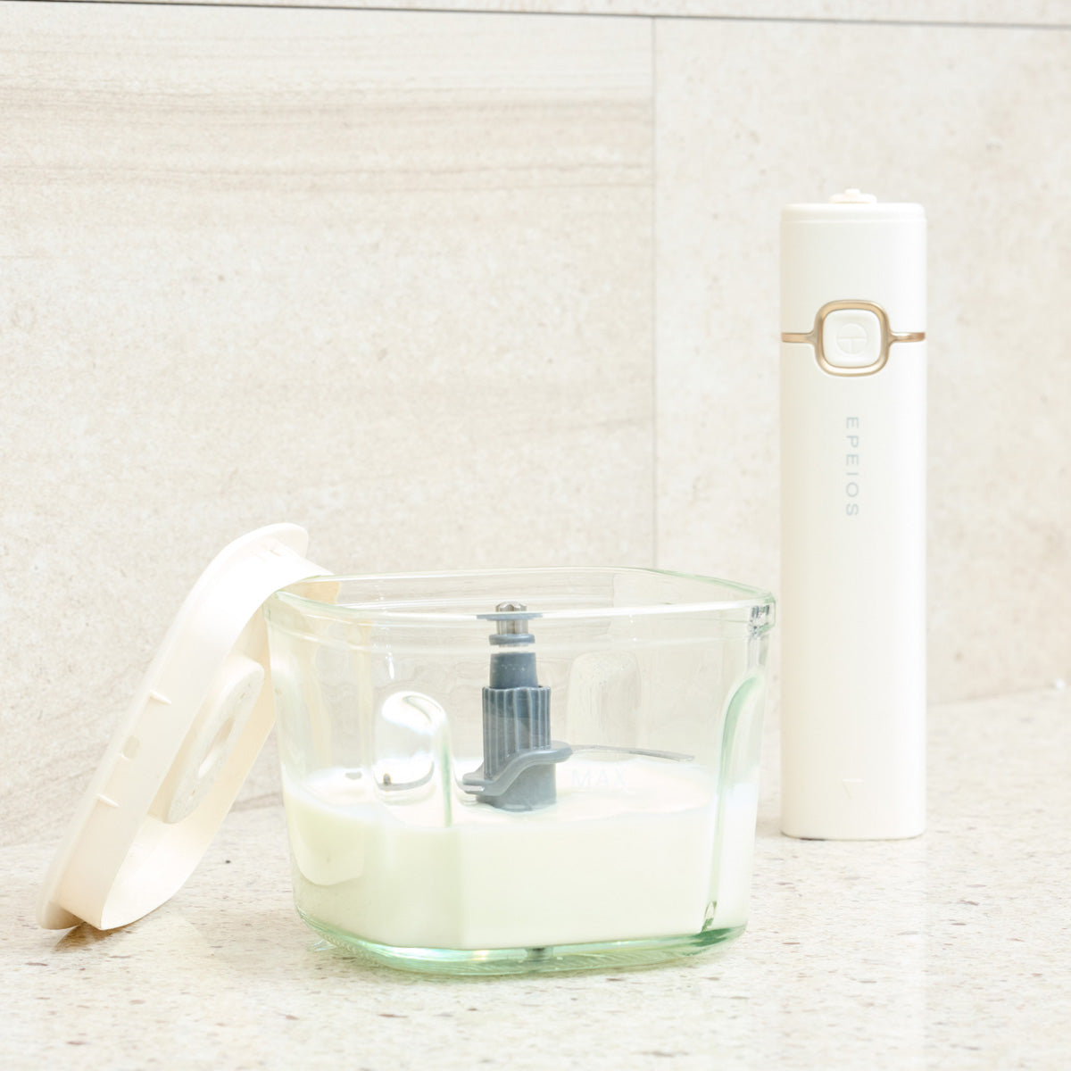 みじん切りやミンチ、離乳食などのペースト作りから、時間も力もいる「おろし」、手作業だと大変な「泡立て」もフタをしたままなので飛び散らず片付けも楽チン。お料理の幅が広がるのはもちろん、時短かつ手軽に使用いただけます。